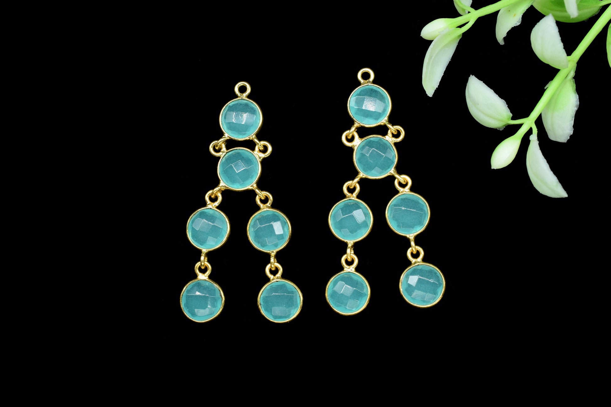 Gemstone Chandelier Earrings,Craft Supplies,Dangle Beads Earring,Handmade Jewelry,Round Bezel Earring,Components Earring,Station Link,Gift