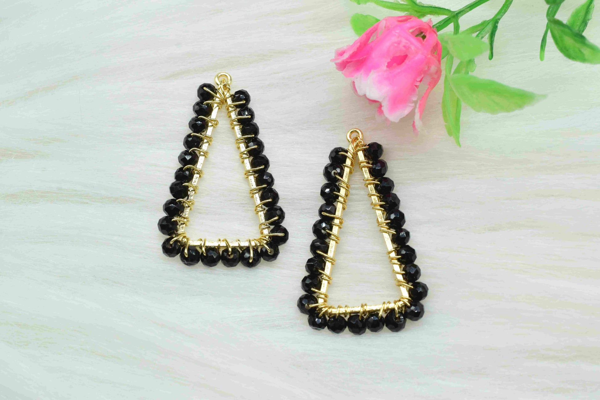 .Gemstone Component Black Onyx Wire Wrapped Dangle Earring,Component Jewellery,Component Triangle Shape Pendant Jewellery,Beads Connector Earring