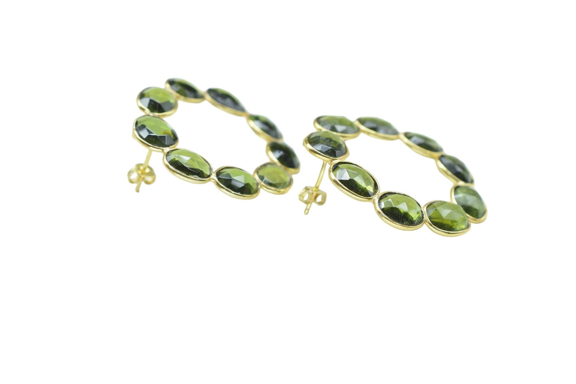 Gemstone Green Tourmaline Earring/Bridal Earring/Round Shape Earring/Handmade Earring/Gold Plated Earring/Green Stone Earring/Women Earring