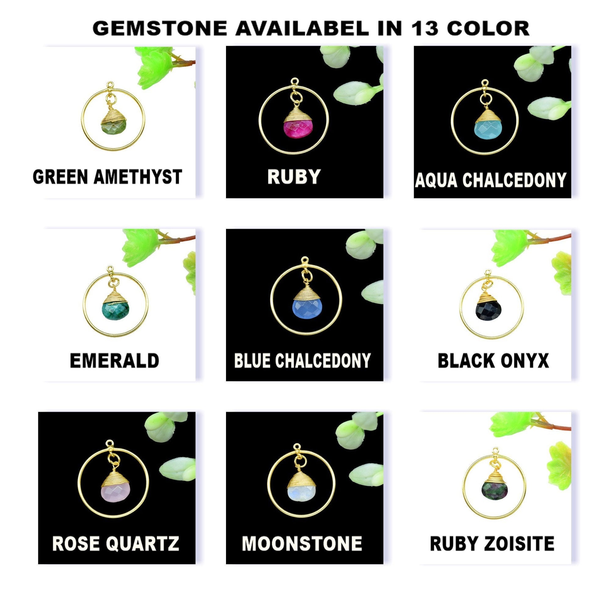 Gemstone :- Green Amethyst Quartz , Ruby , Aqua Chalcedony , Emerald ,Blue Chalcedony , Rose Quartz , Moonstone , Ruby Zoisite , Black Onyx ,