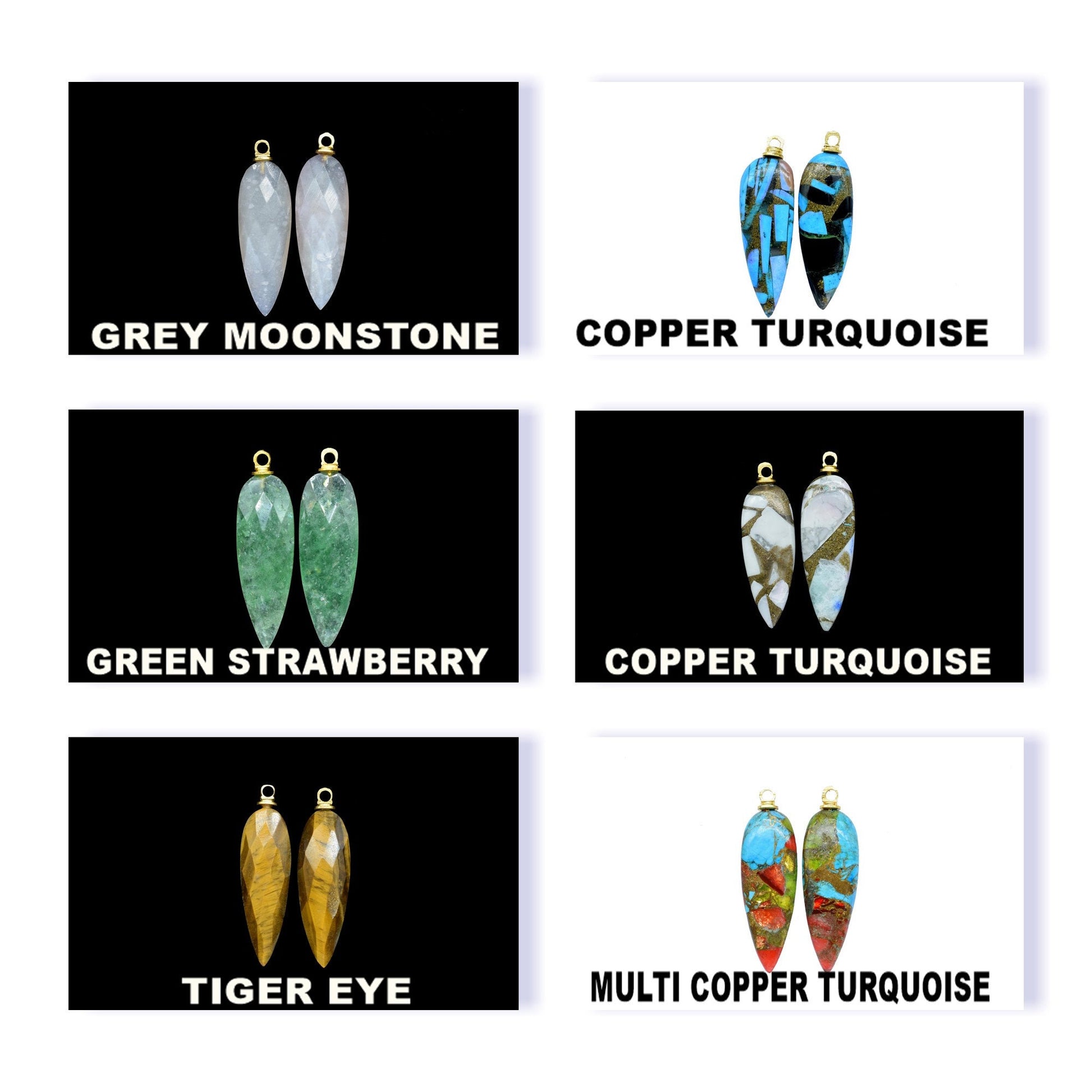 Gemstone : Green Strawberry, Blue Copper Turquoise , Grey Moonstone , Tiger Eye , Multi Copper Turquoise , Copper Turquoise