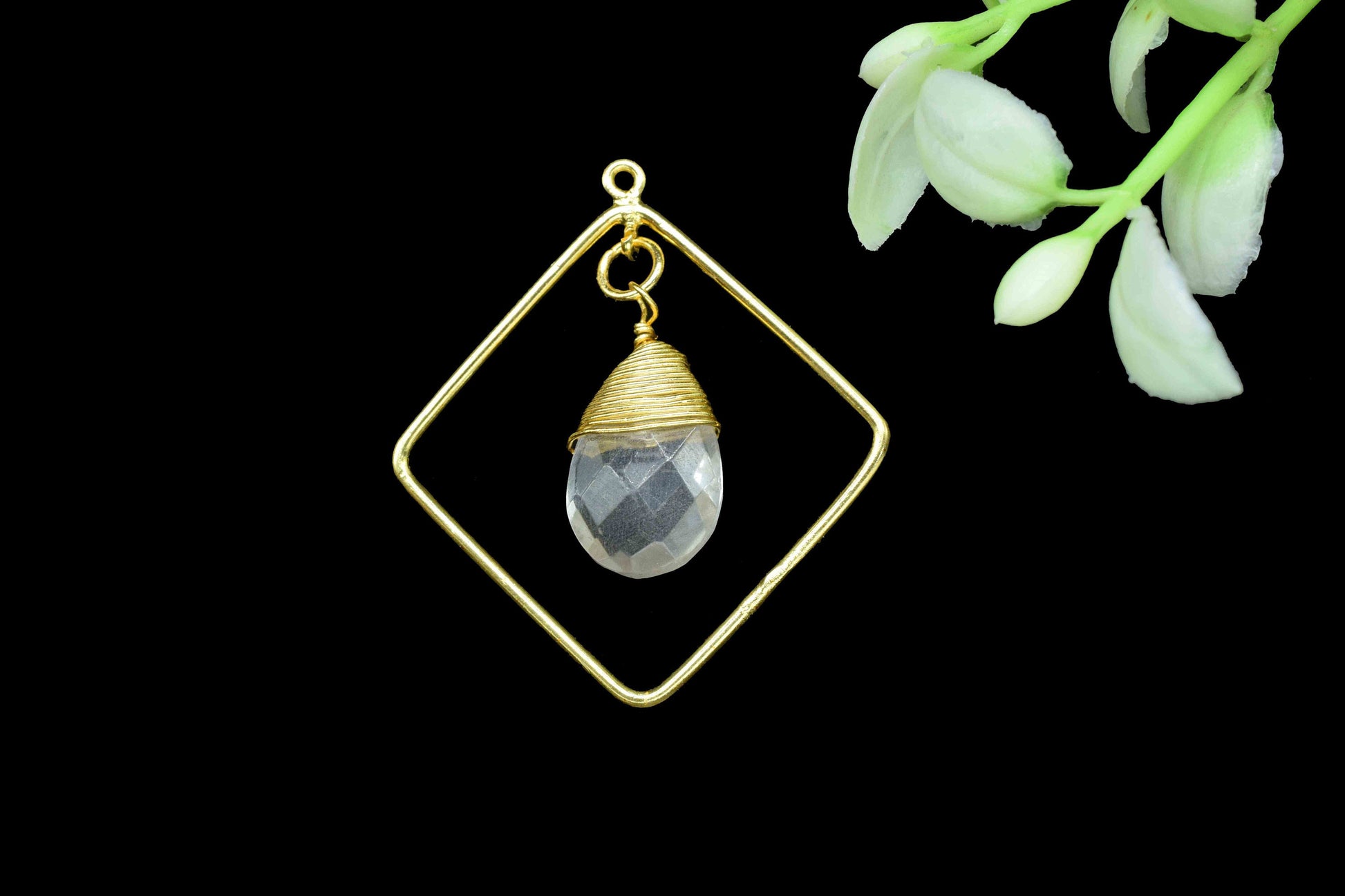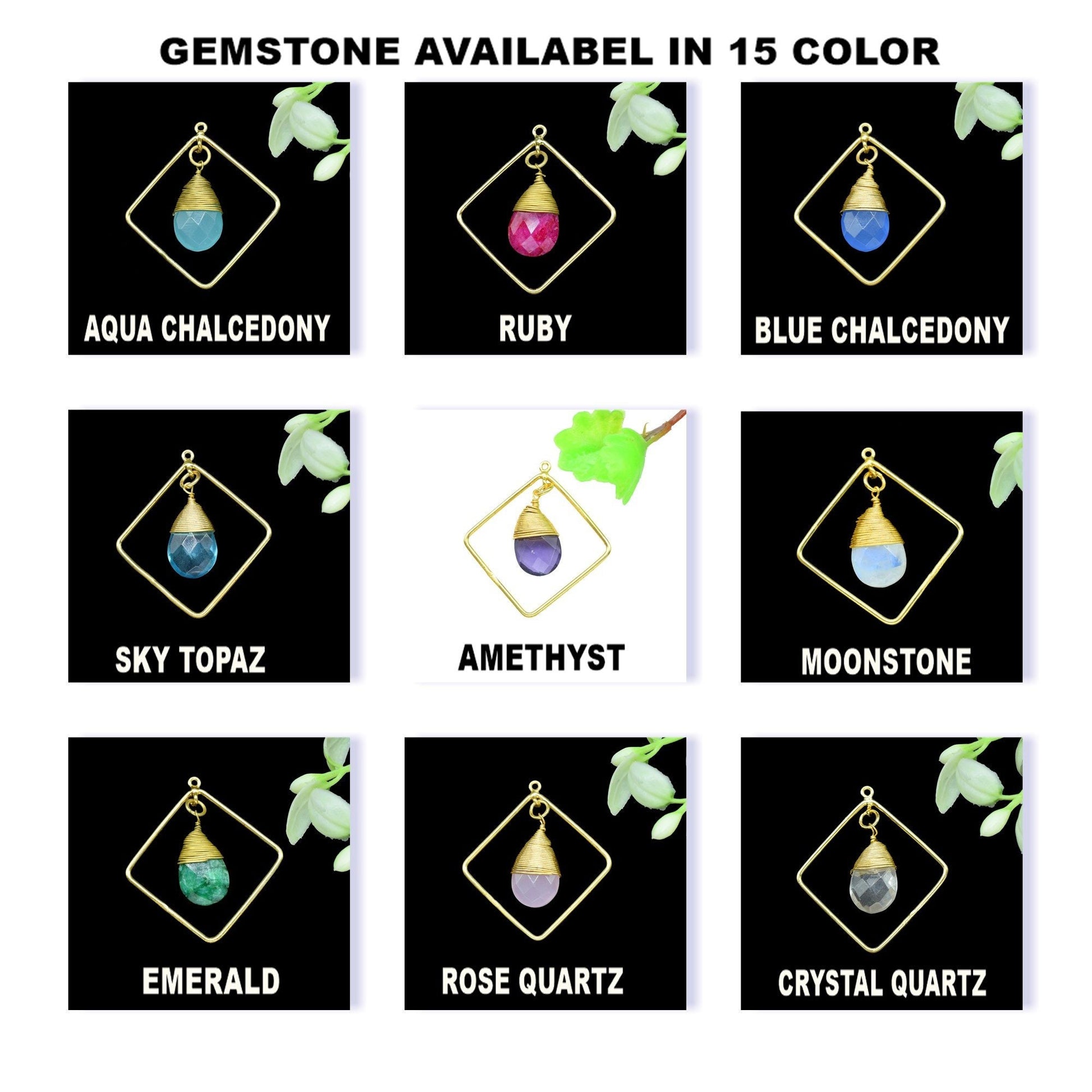 Gemstone Square Connectors,Teardrop Beads Dangle Earring,Station Link Supply,Handmade Jewelry,Finding Square Pendant,Wire Wrapped Component