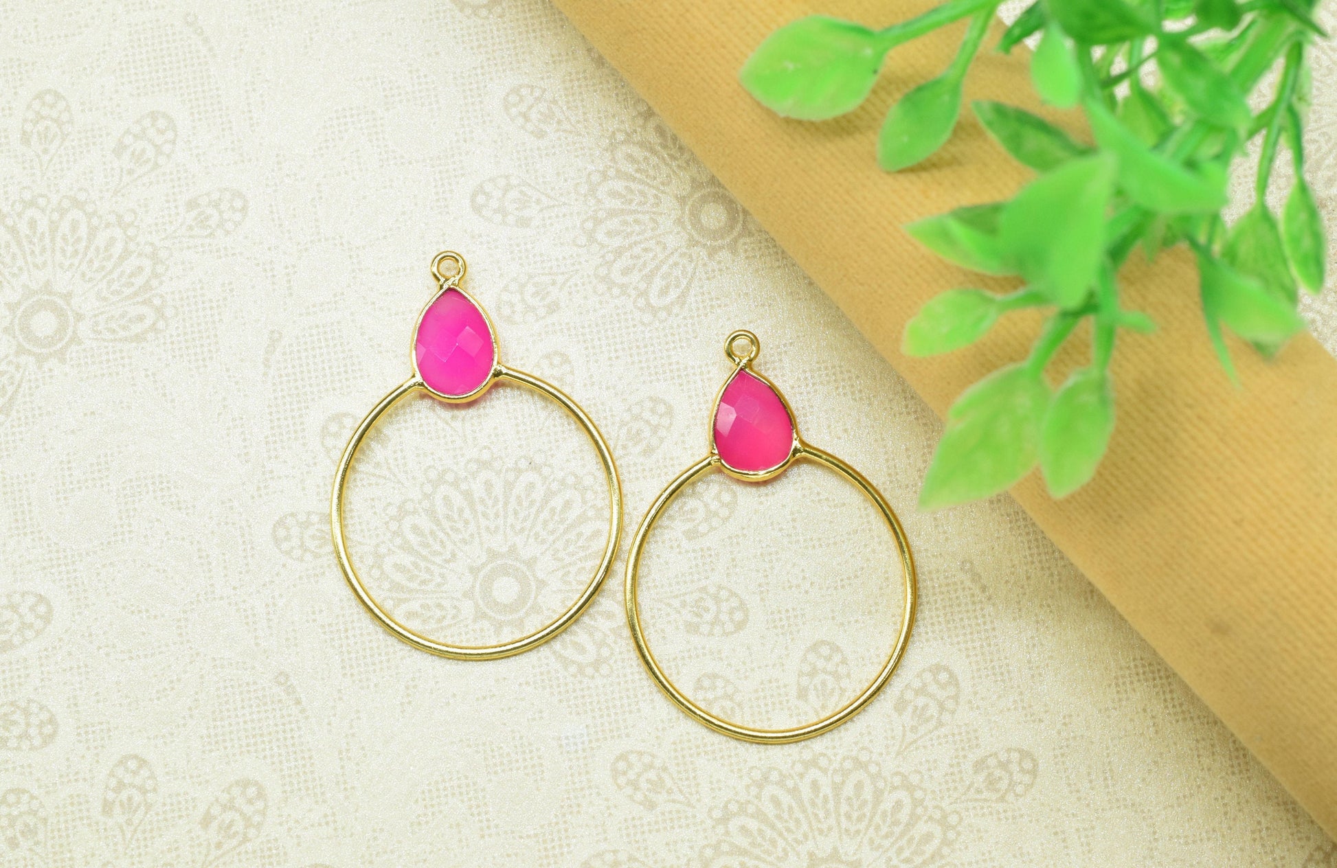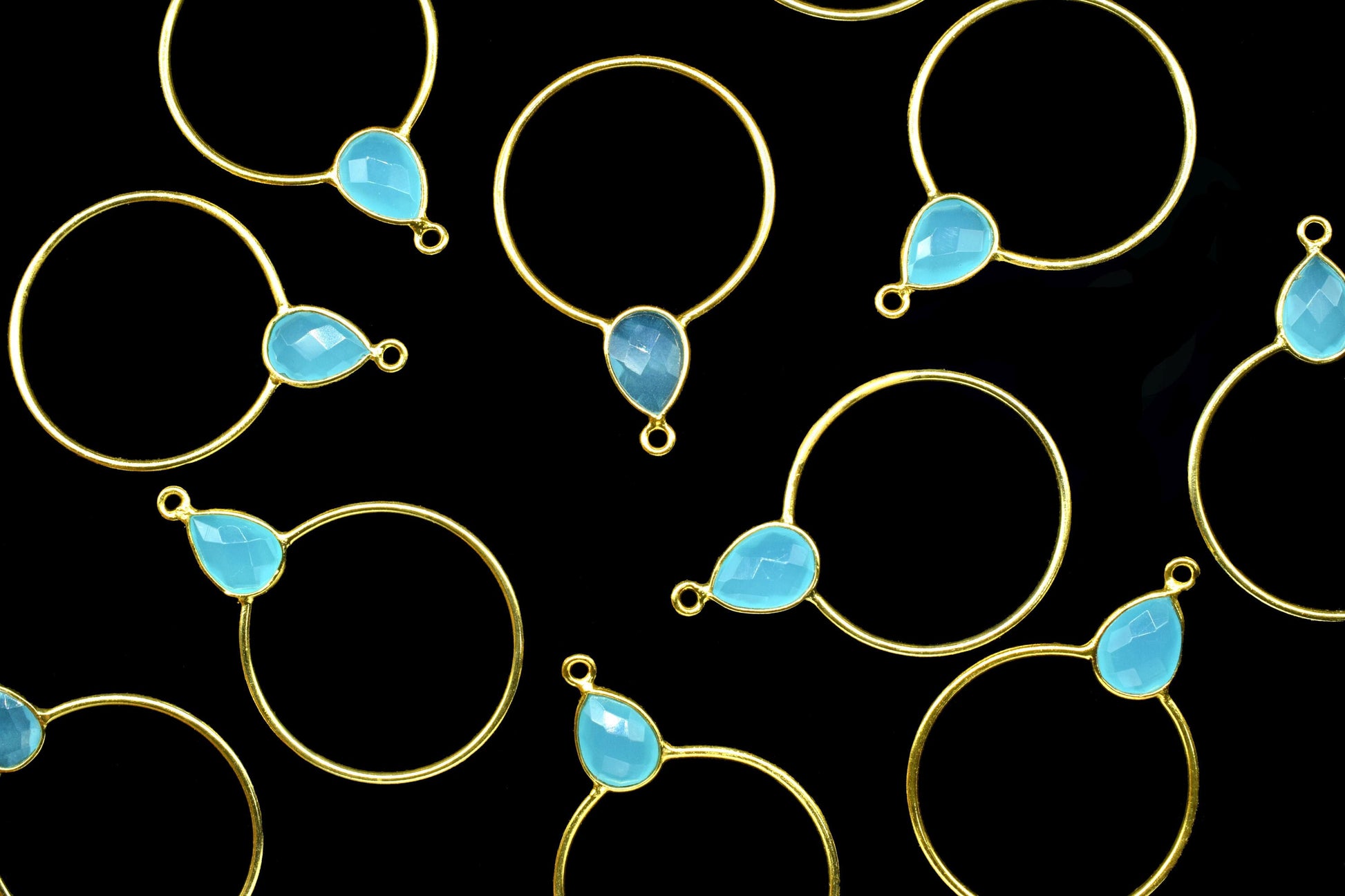 Gemstone Teardrop Earrings,Circle Handmade Pendants,Single bail Station Connector Jewelry,Earring Components,Findings Bezel Charms Pendants