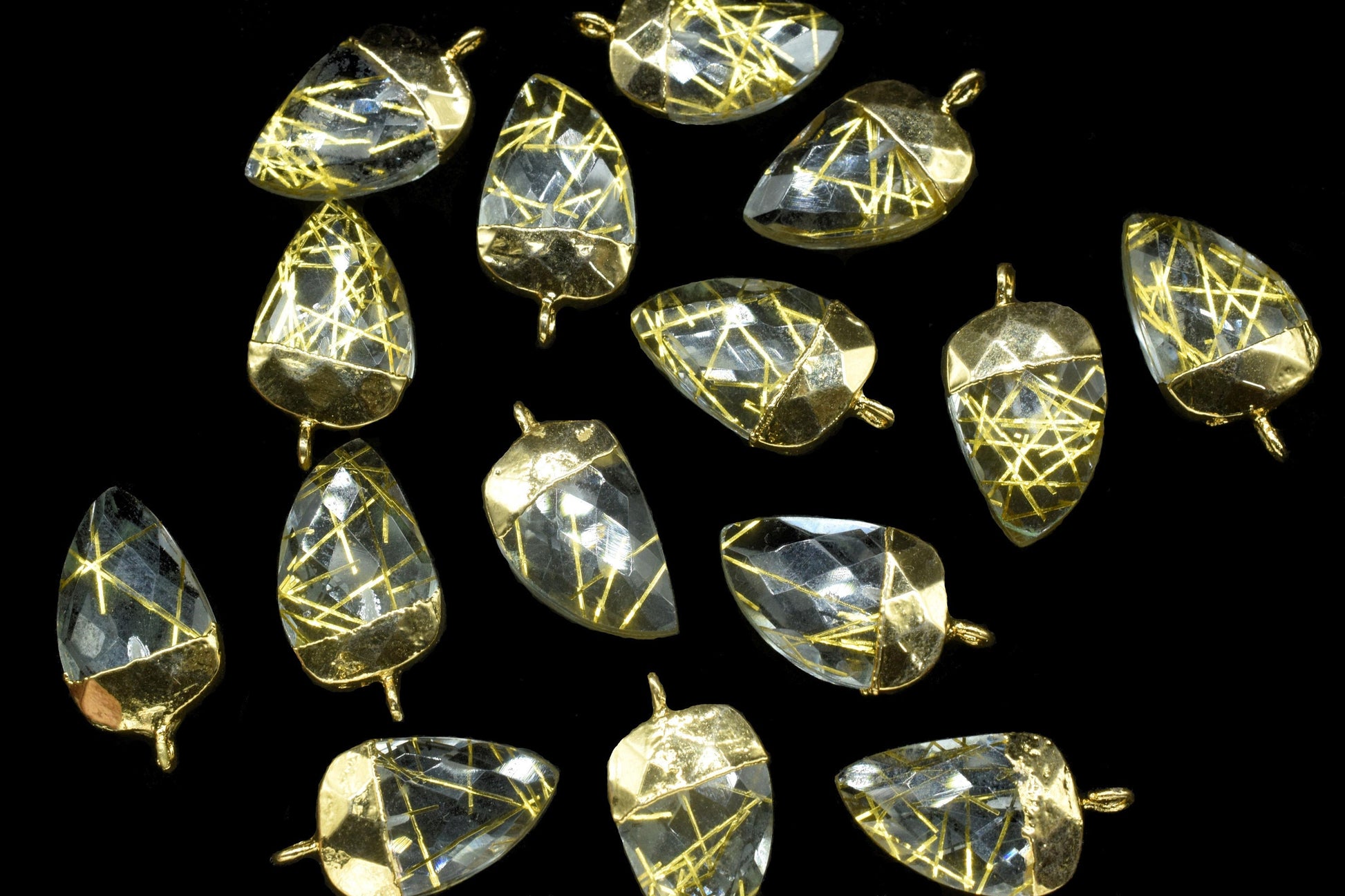 Gold Rutile Electroplated Pendant,horn shape Pendant Charm,Electroplated Pendant jewelry,Gemstone Component Pendan,Handmade Connector,Gift