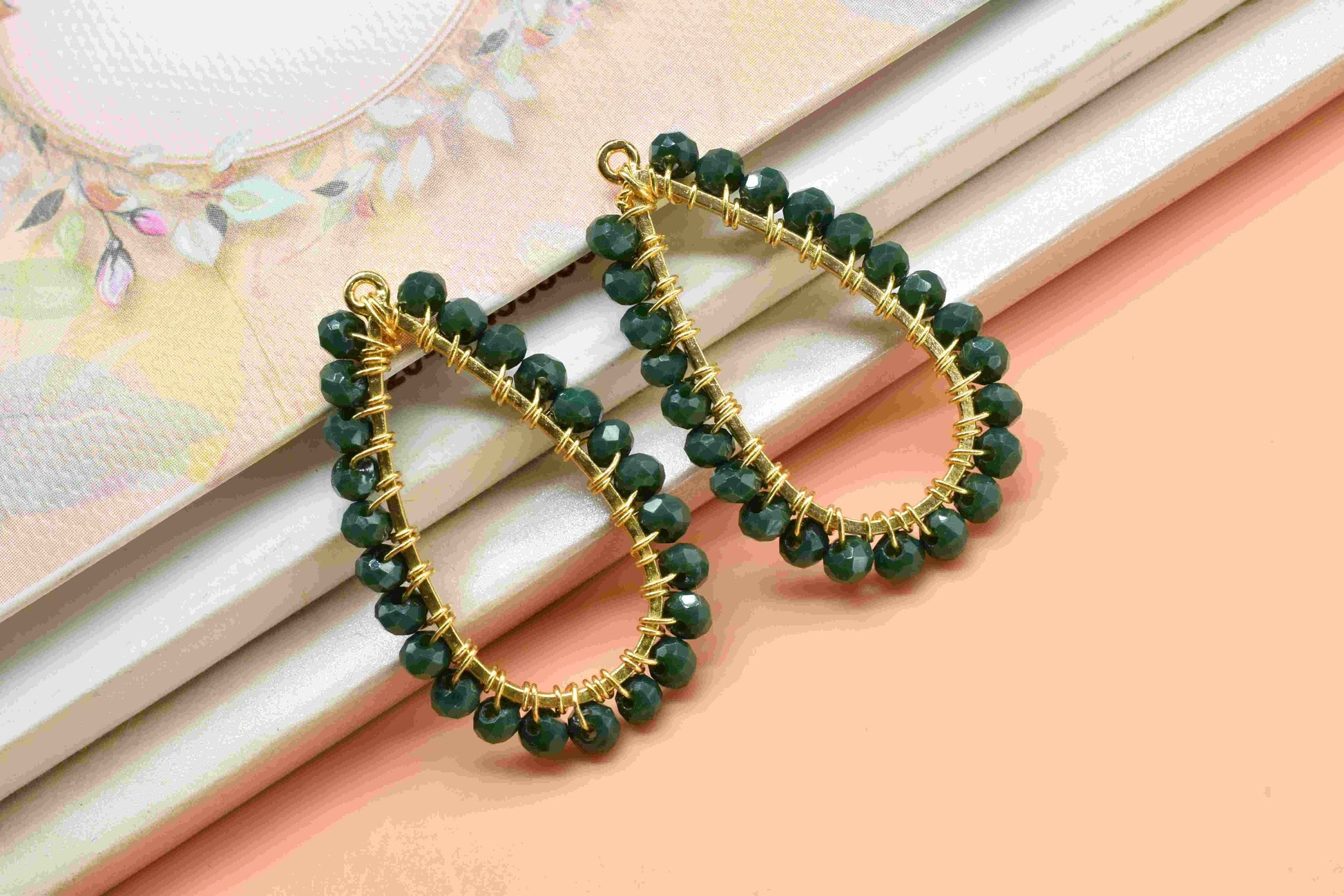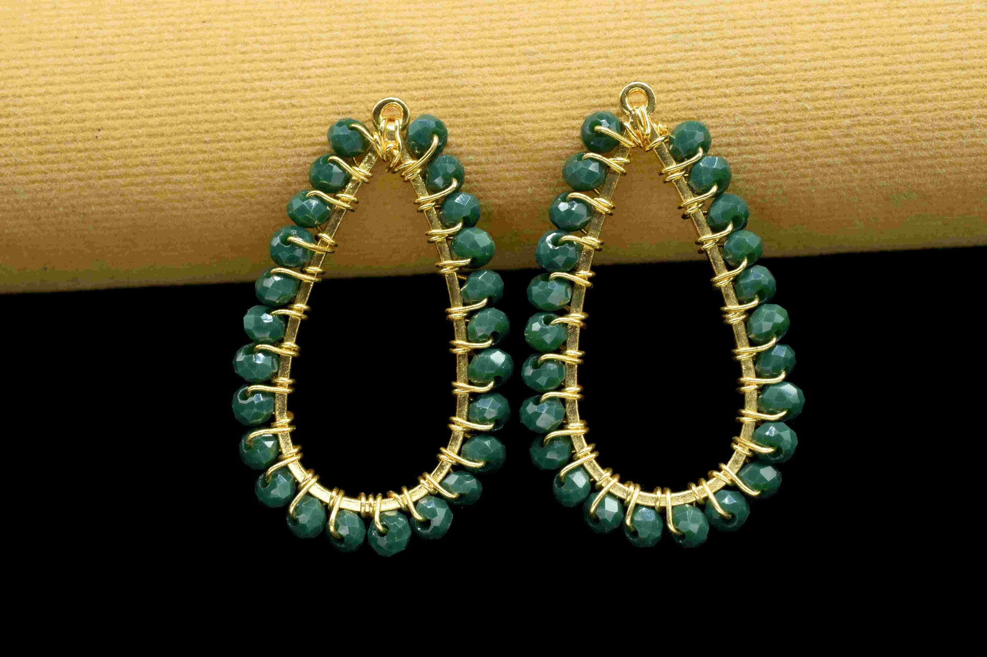 Green Agate Beaded Earring Connector,Gemstone Wire Wrapped Components,Pendant Jewelry Connector,Finding Necklace,Green Agate Jewelry,Gift