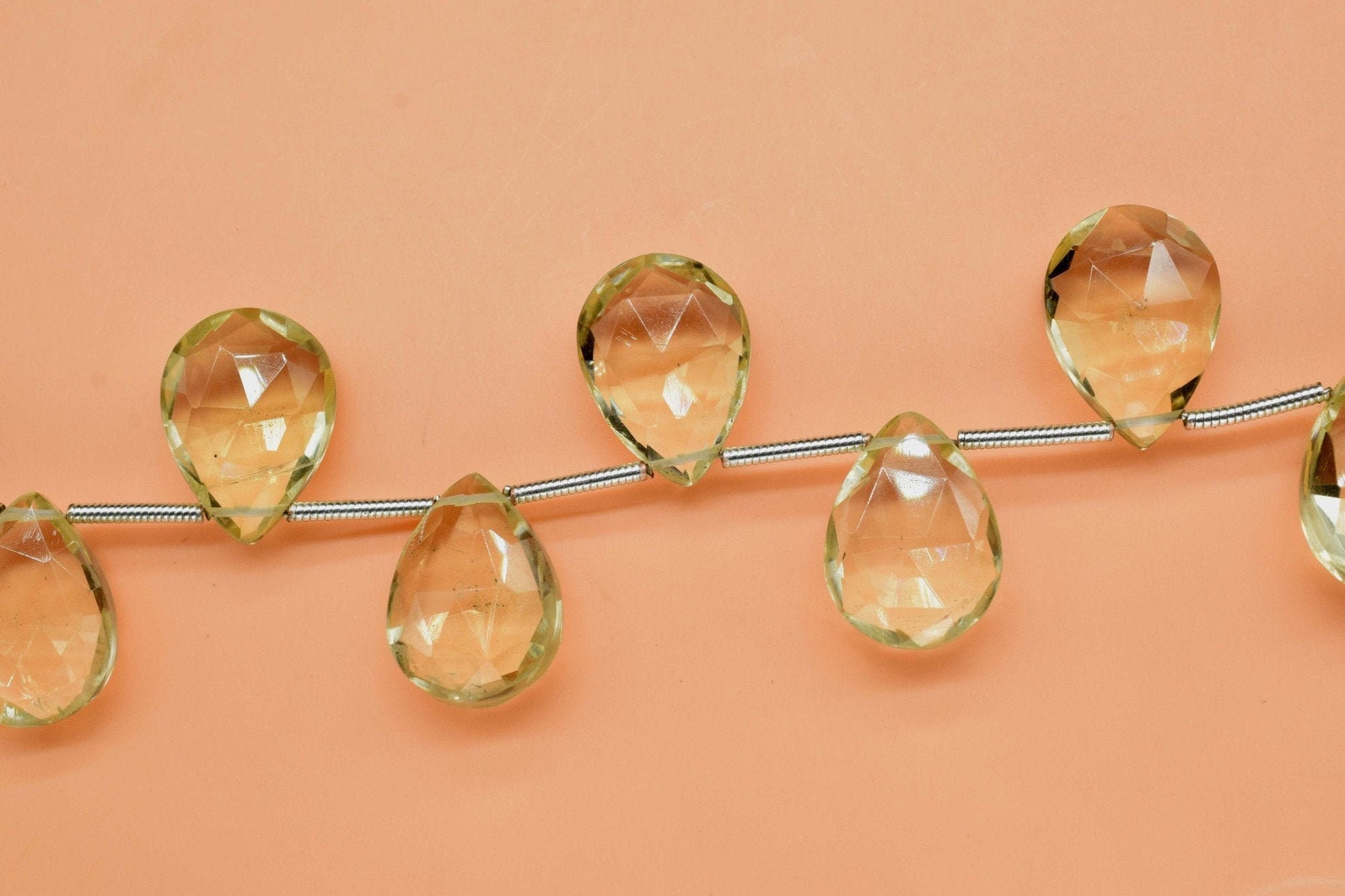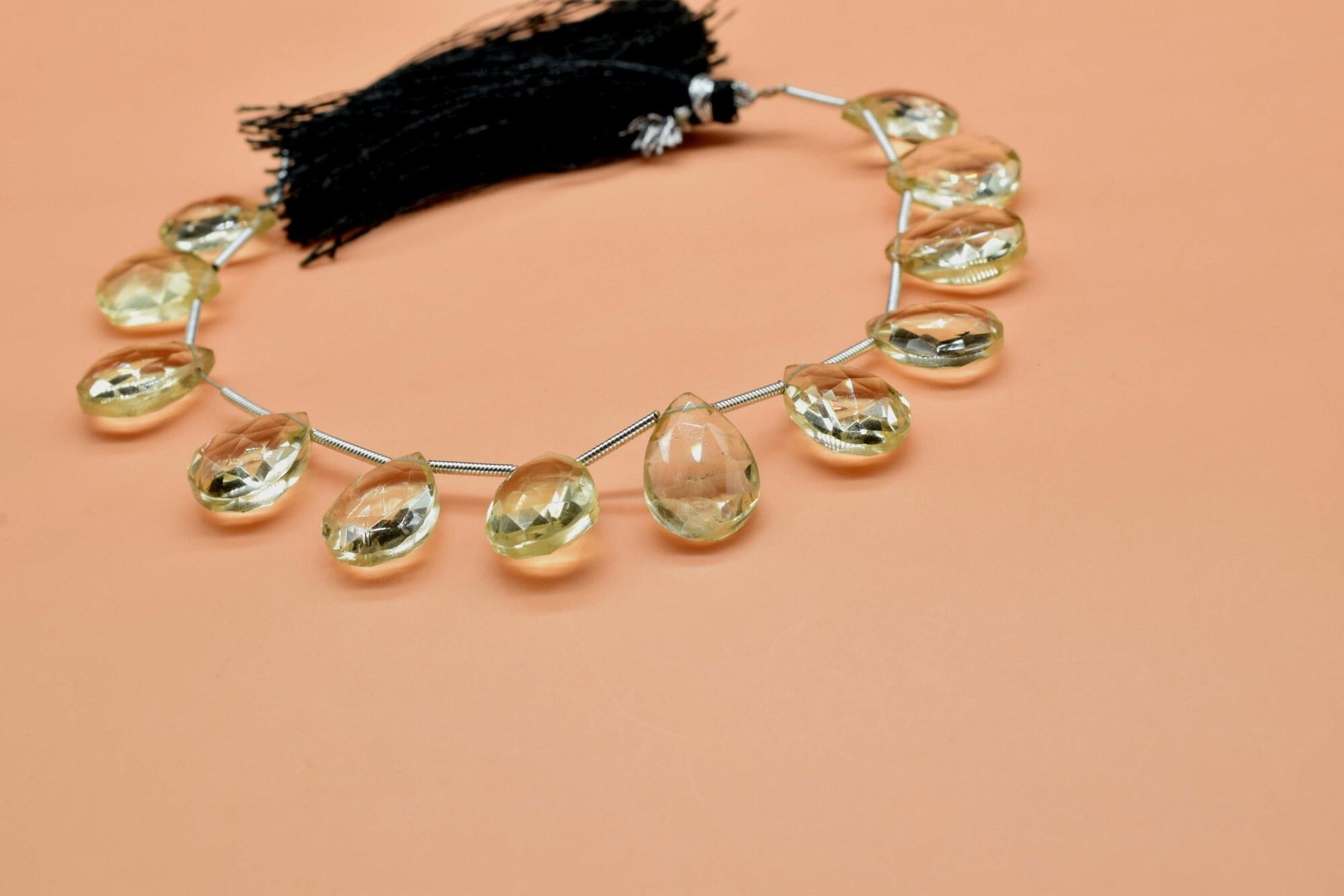 Green Amethyst Quartz Faceted Pear Shape Briolettes,10x14mm teardrop Briolettes,Faceted Briolette Line,Jewelry making pear,gemstone beads