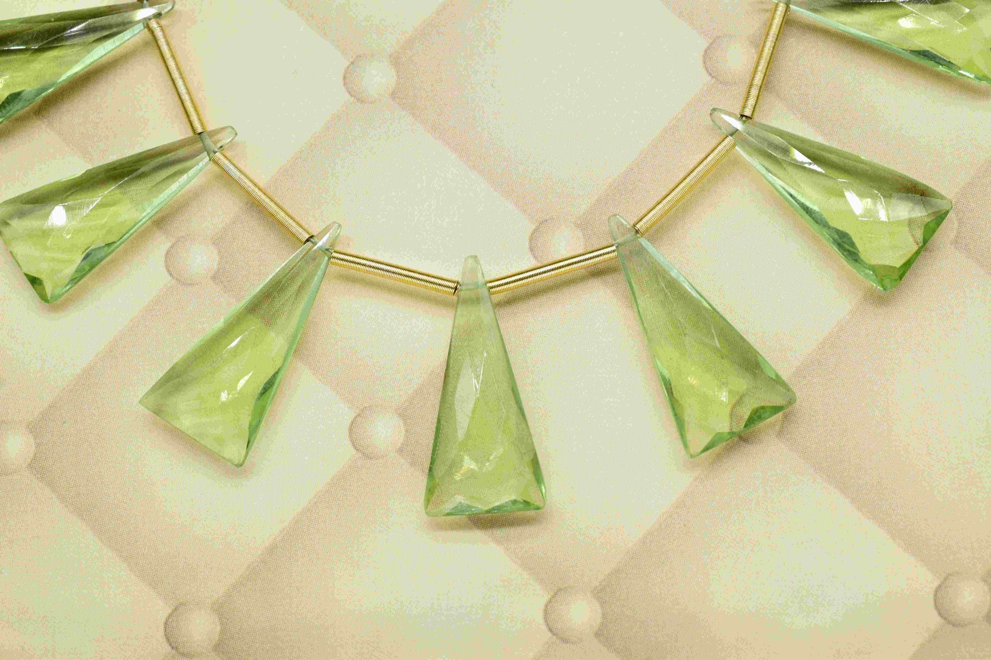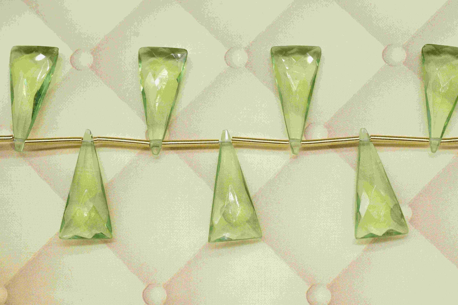 Green Amethyst Triangle Shape Briolettes,Green Faceted Beads,Green Gemstone Briolettes,Fancy Shape Briolette,Green Amethyst Jewelry Supplies