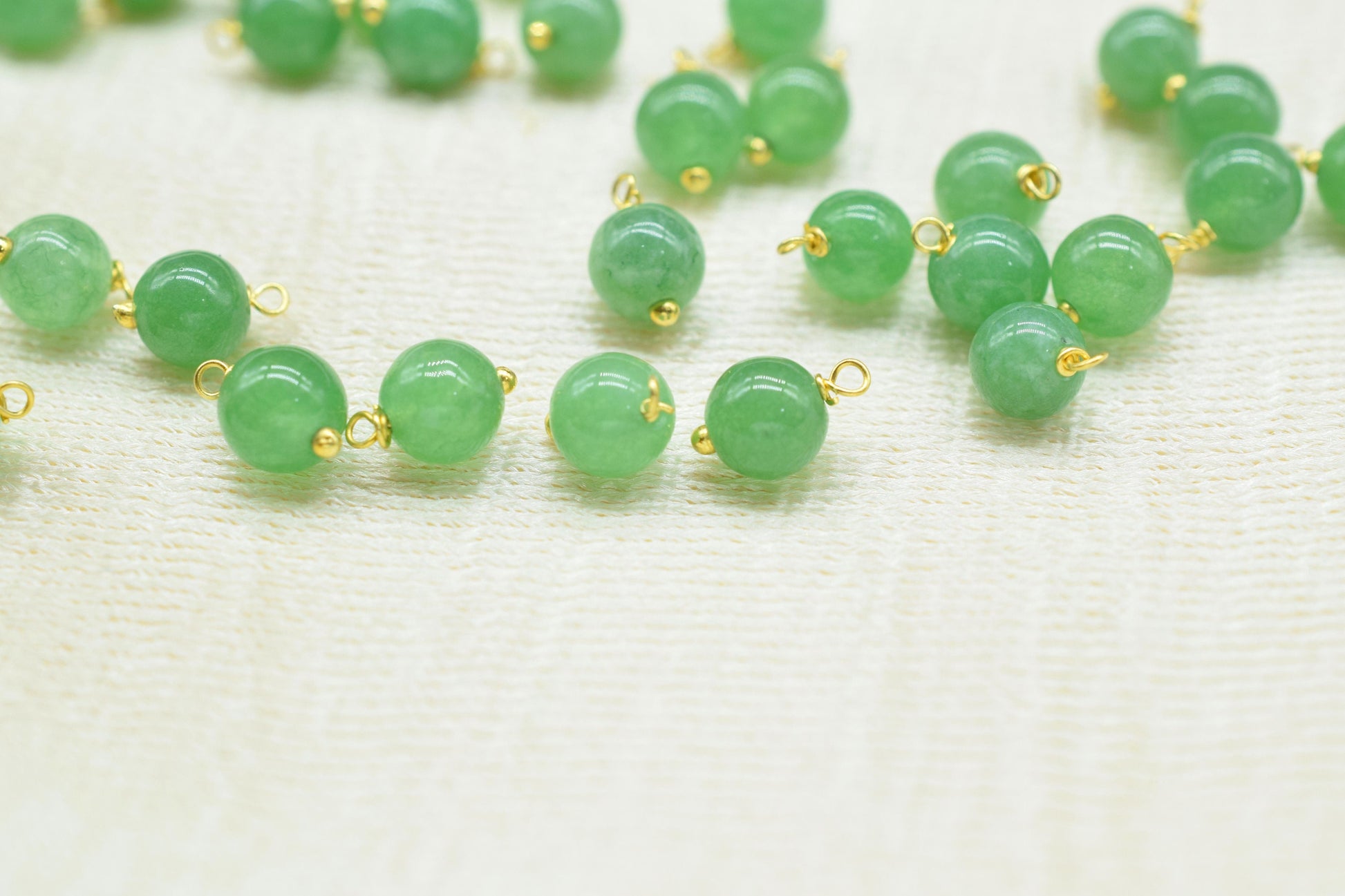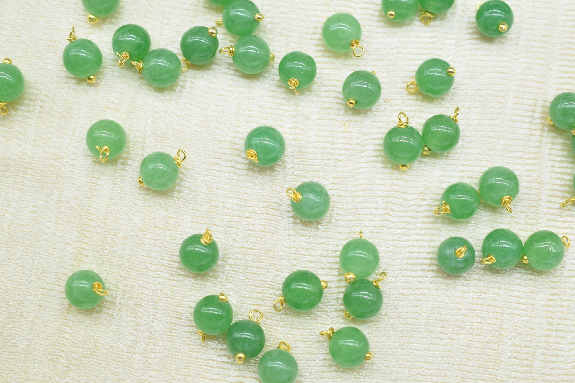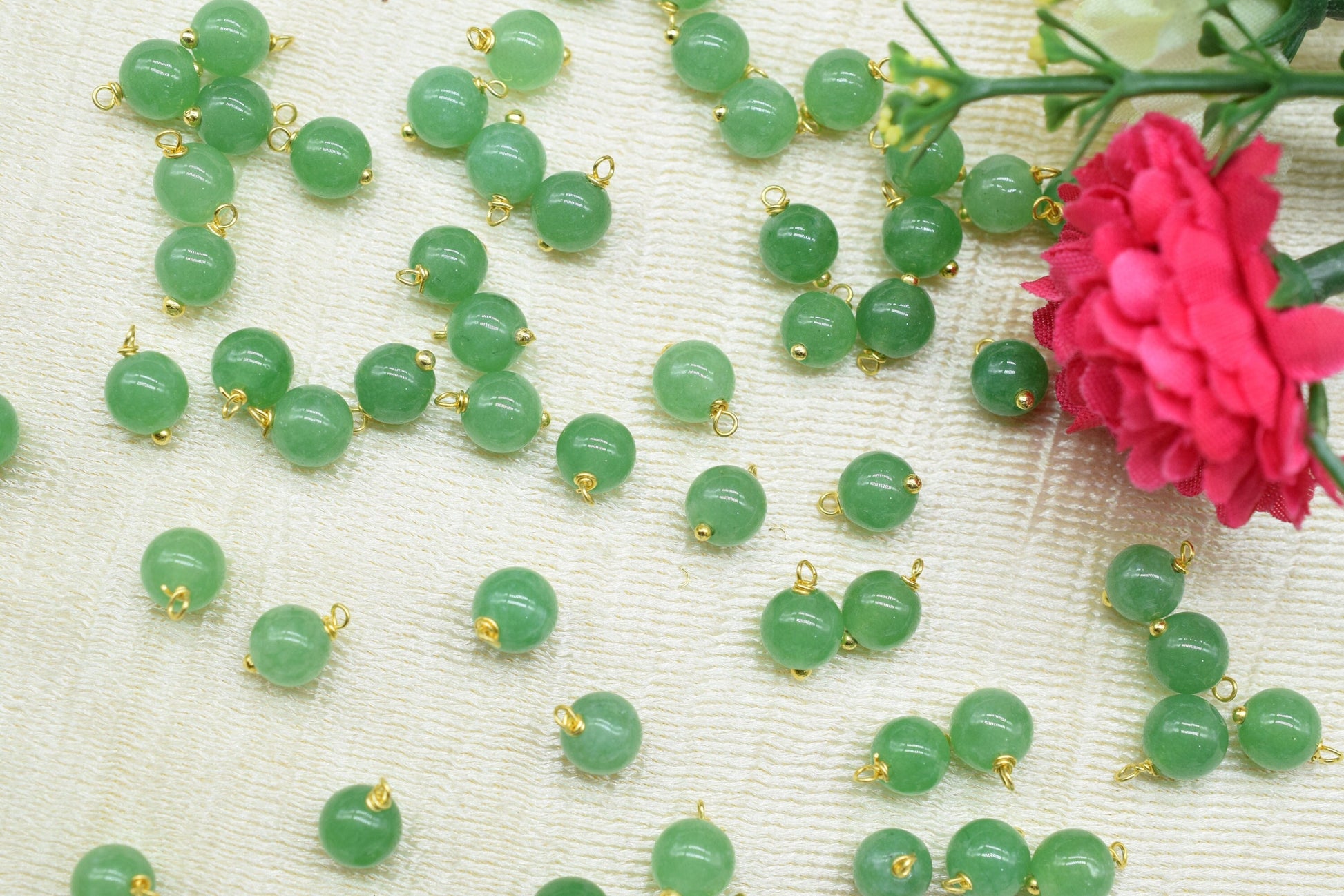 .Green Jade 6mm Round Smooth Beads/Earring Component/Green Jade Single wire wrapped Beads/Round Beads Connector/Gemstone Beads/Gift