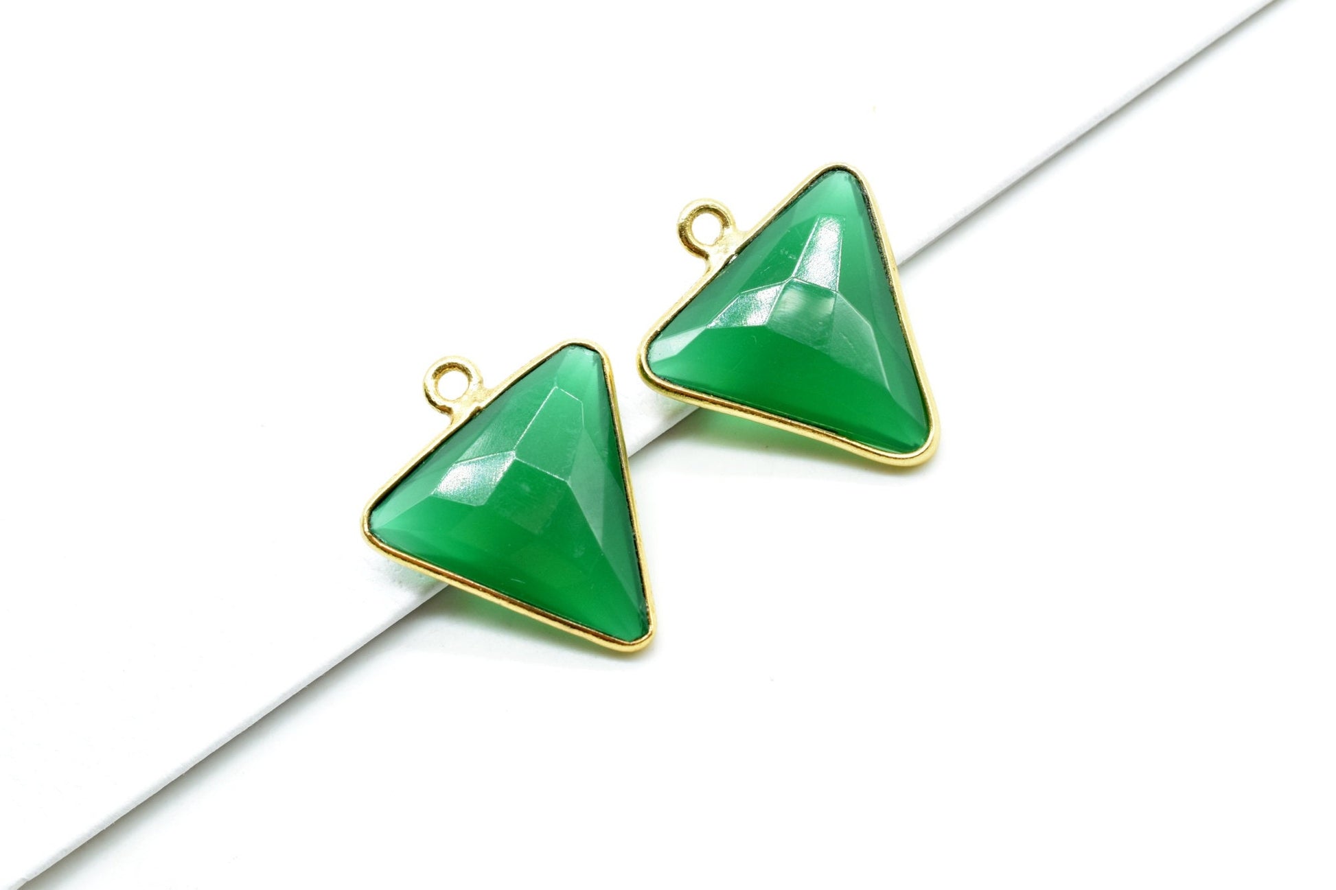 Green Onyx 15x18mm Trillion shape charm,Brass Gold Plated bezel,Green Onyx Faceted Briolette Connector,Green Onyx Bezel Pendant,onyx jewelry