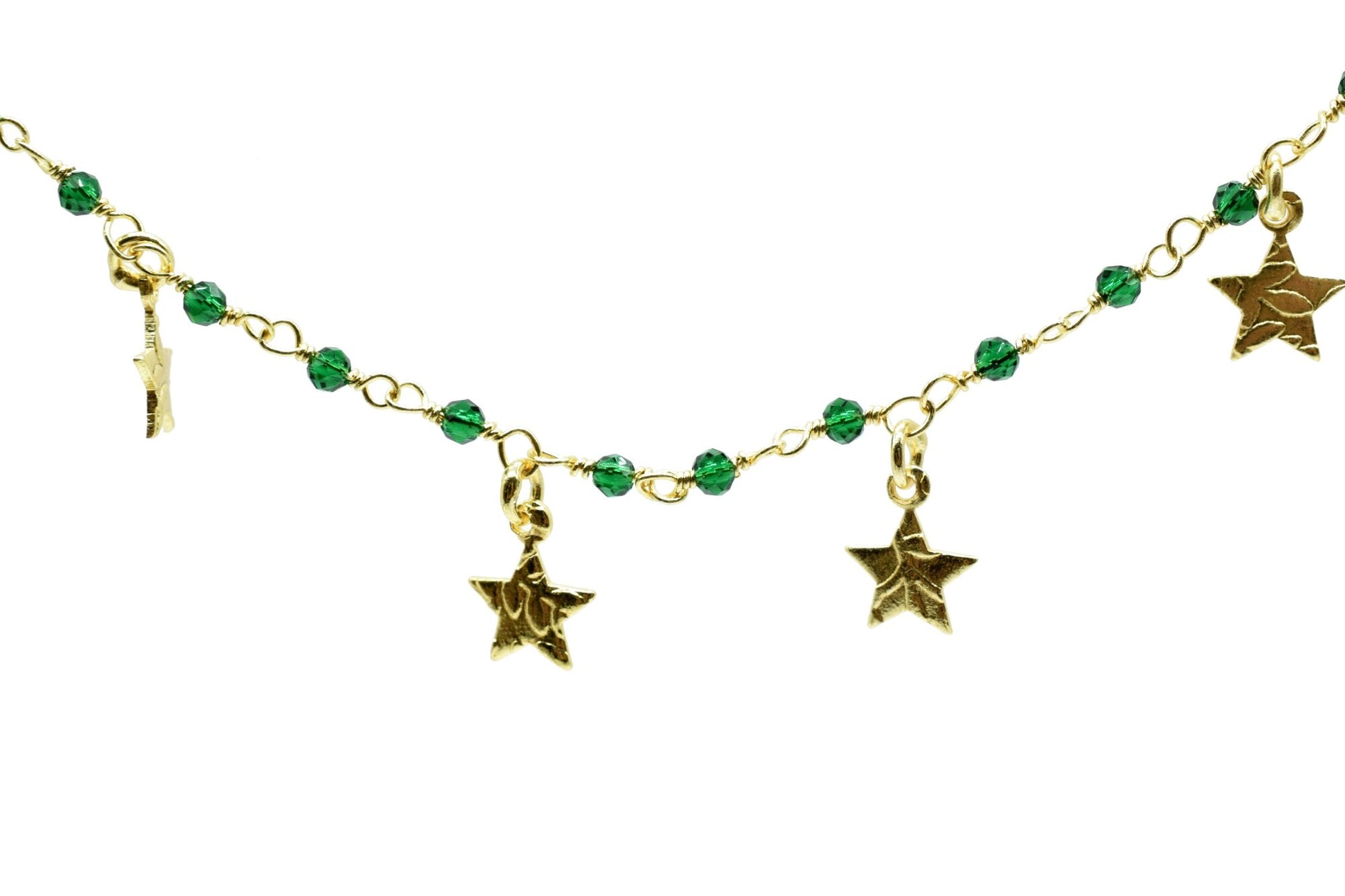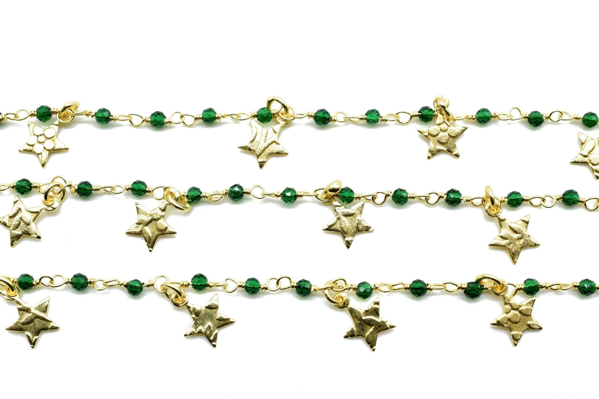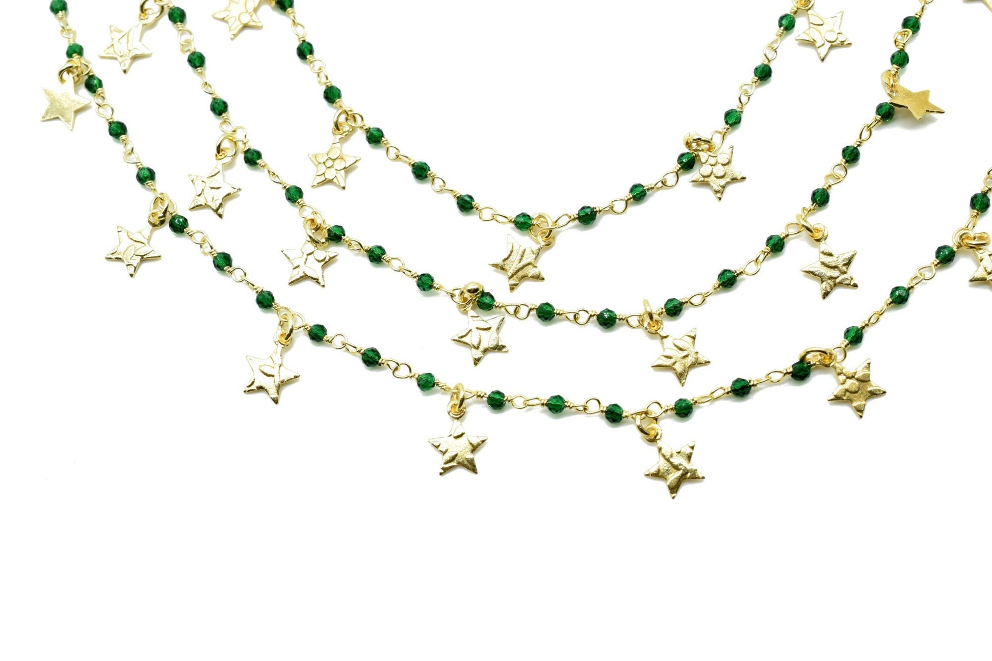 Green onyx 2mm Beaded & Star Charm Chain,Gold Plated Rosary Chain,Wire Wrapping Gemstone Chain, Gemstone chain,Anti-Tarnish Finished chain