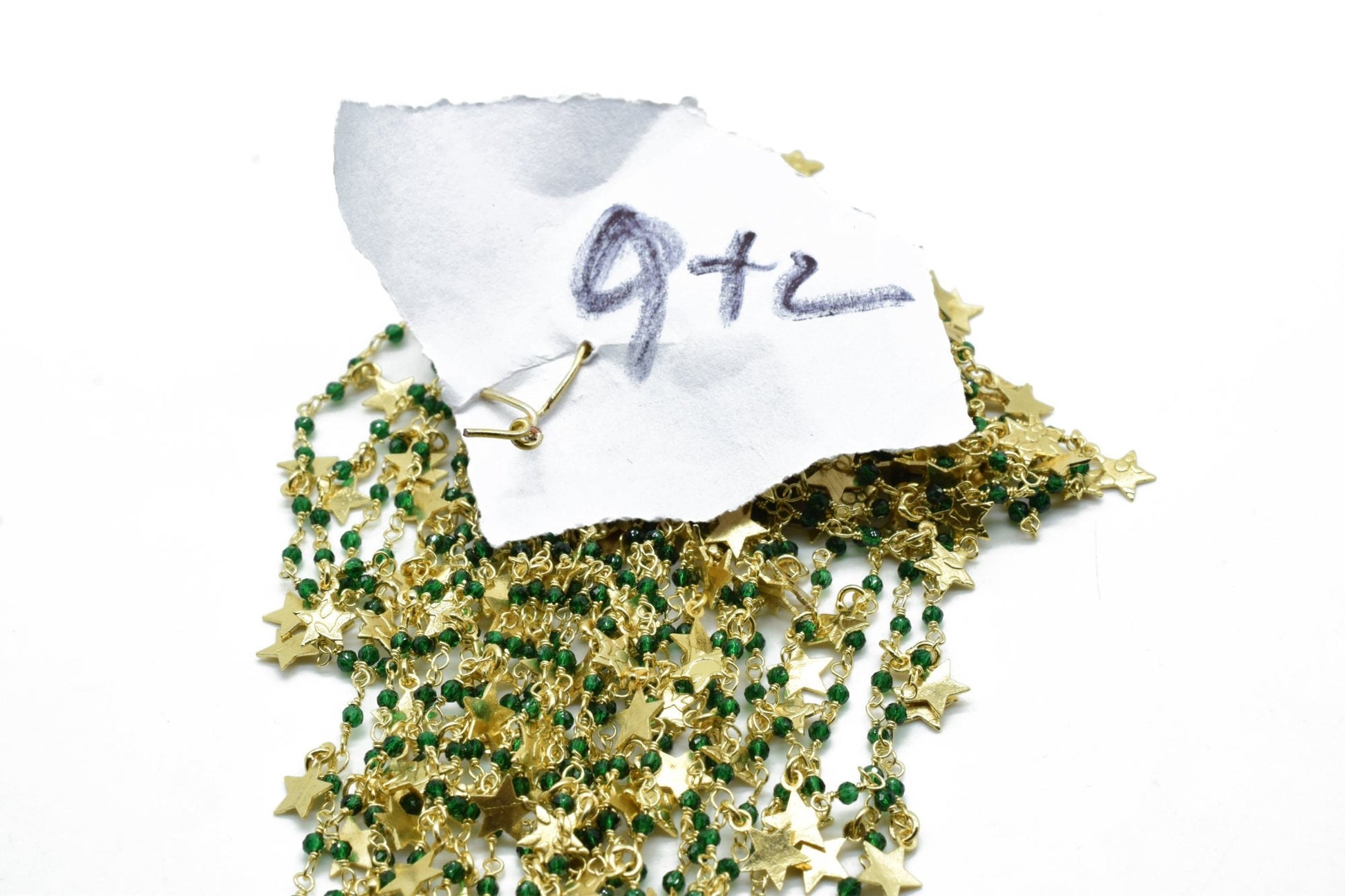 .Green onyx 2mm Beaded & Star Charm Chain,Gold Plated Rosary Chain,Wire Wrapping Gemstone Chain, Gemstone chain,Anti-Tarnish Finished chain