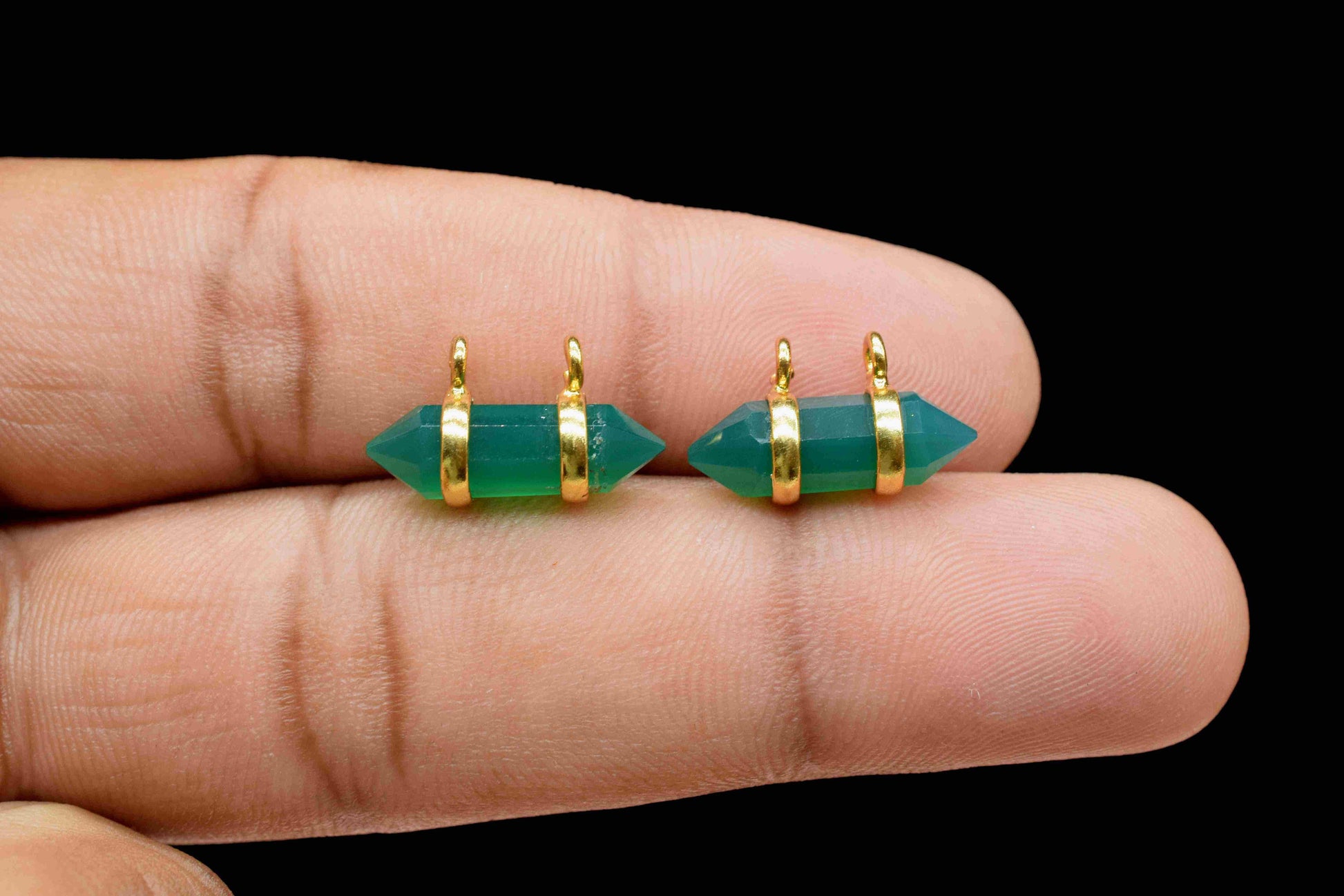 .Green Onyx 5x15mm Point Shape Pendant,Onyx Double Bail Component,Green Onyx Two side point Shape Electroplating Pendant,Jewellery Making,Gift