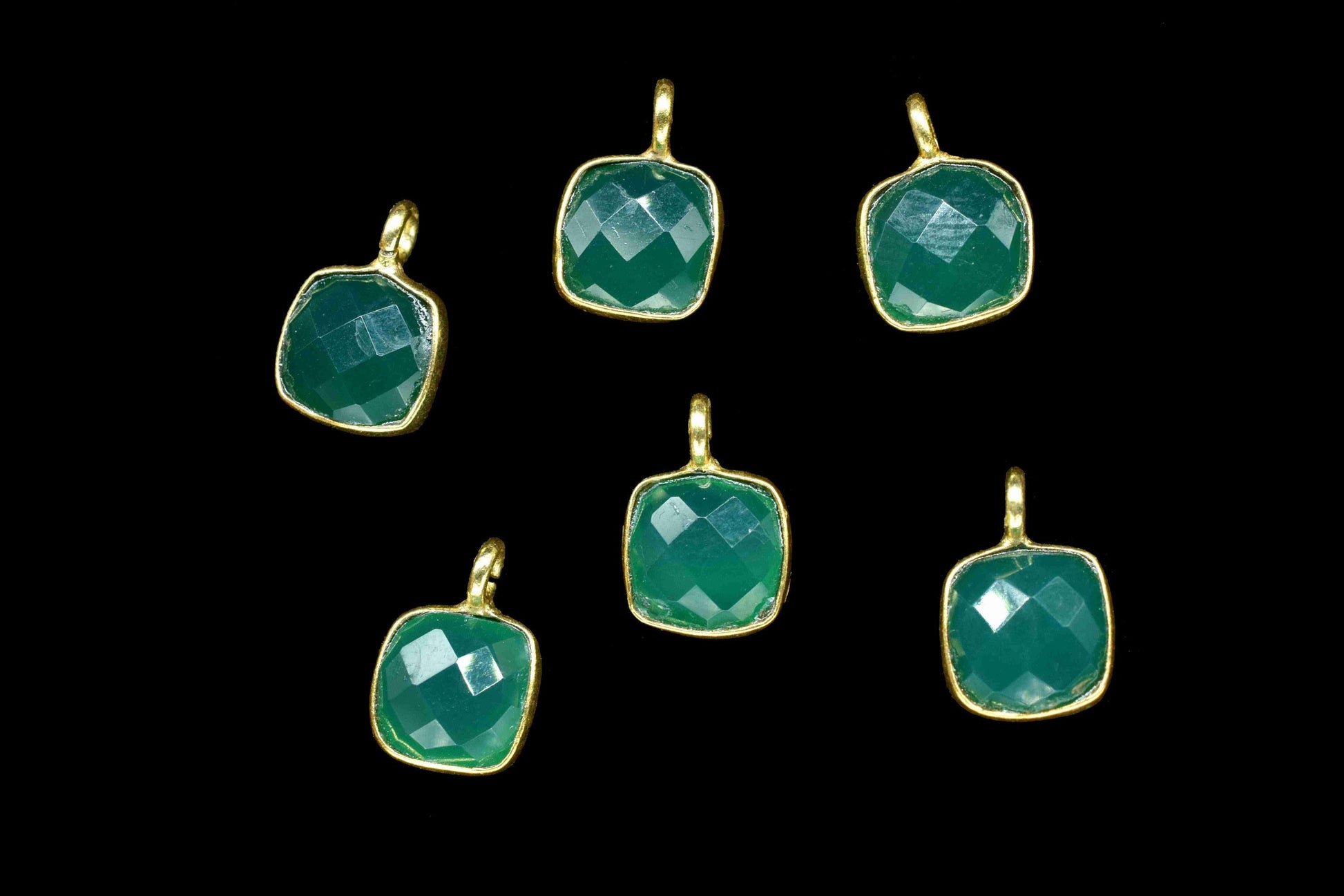 .Green Onyx 6mm Cushion Earring Connector,Green Onyx Pendant Connector,Onyx Earring Stud Connector,Green Onyx Component,Jewellery Making Finding
