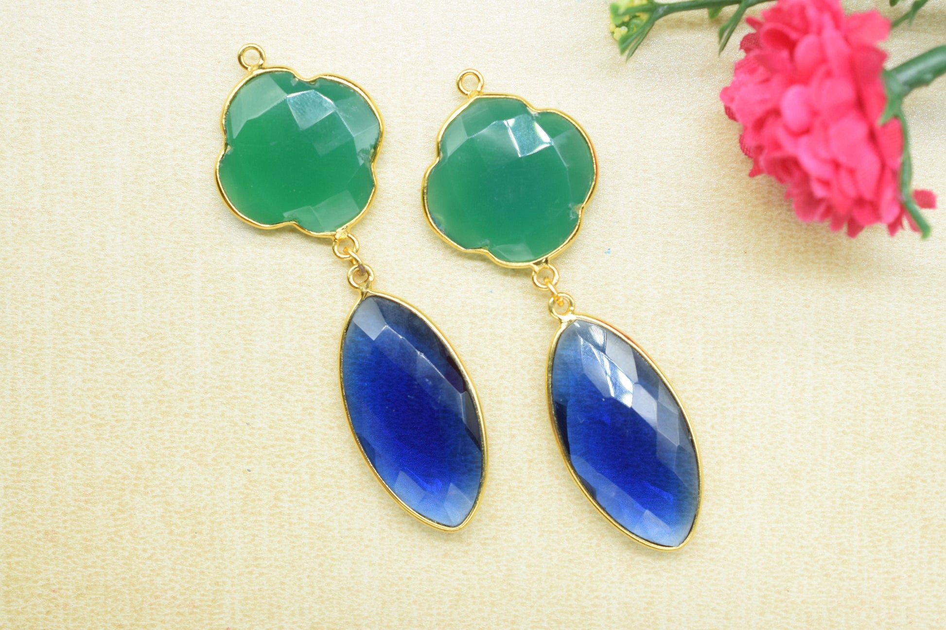 Green Onyx Bezel Charms Connector/Iolite Connector Jewelry/Earring Connector/Station Bezel Link Pendant/Handmade Jewelry/Women Jewelry/Gift