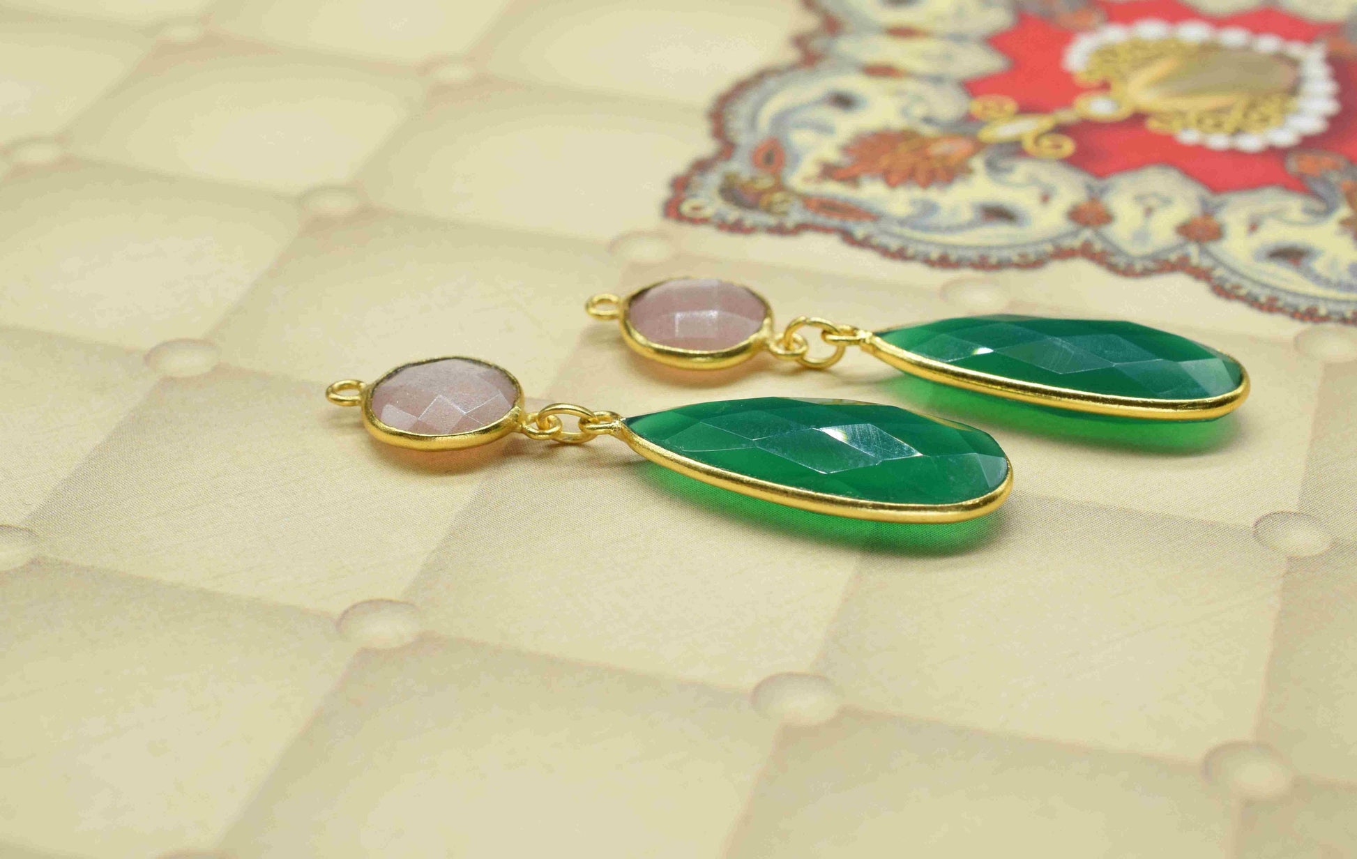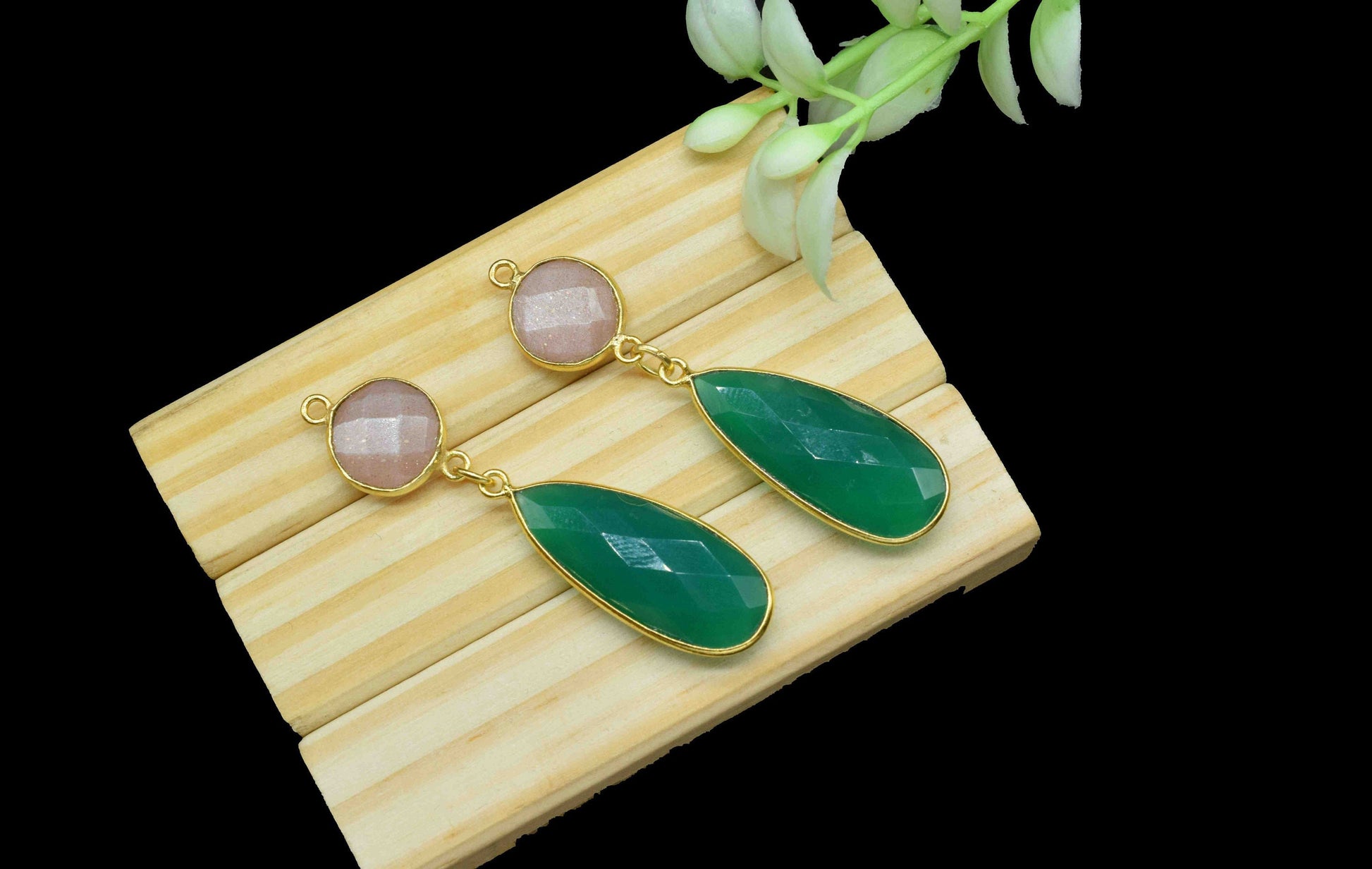 Green Onyx Dangle pendant Charm,Multi Gemstone Dangle Earring,Peach Moonstone pendant Connector,Handmade Station Link,Component Jewelry Gift