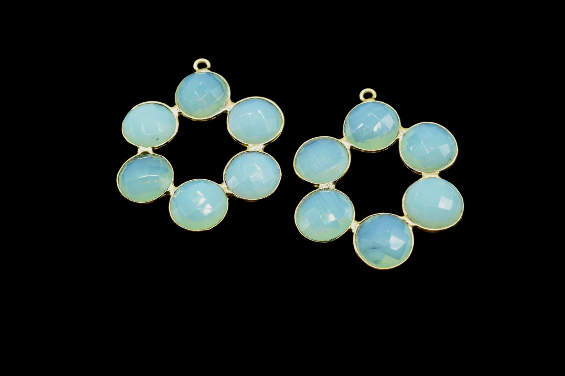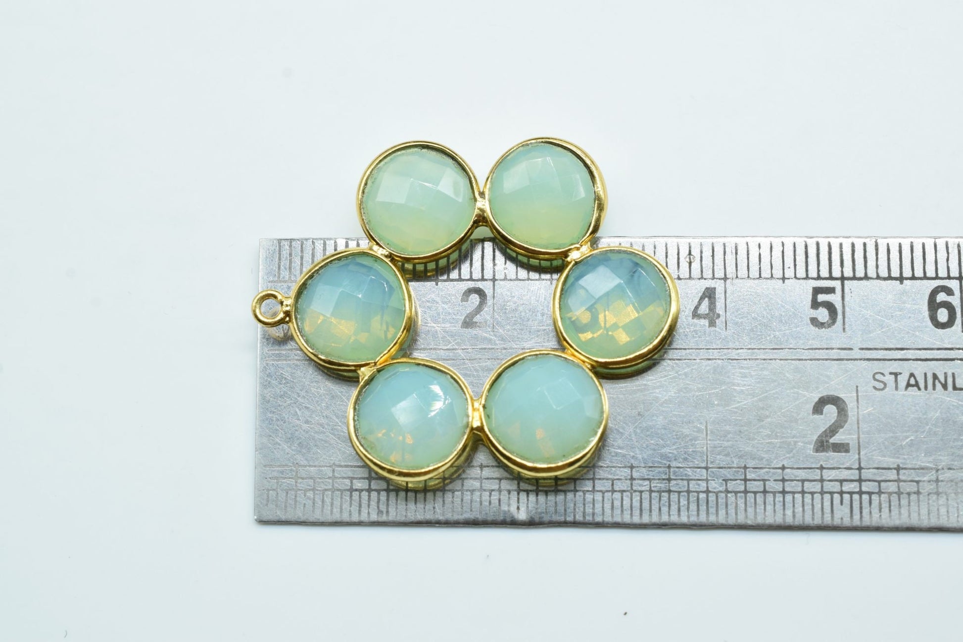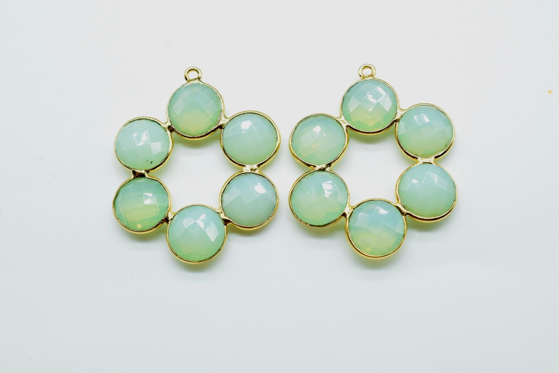Green Opalite Earring,Green Opalite Pendant,Green Opalite Bezel,10mm Round Bezel,Pendant Connector,Six Attached Bezel,Necklace Pendant