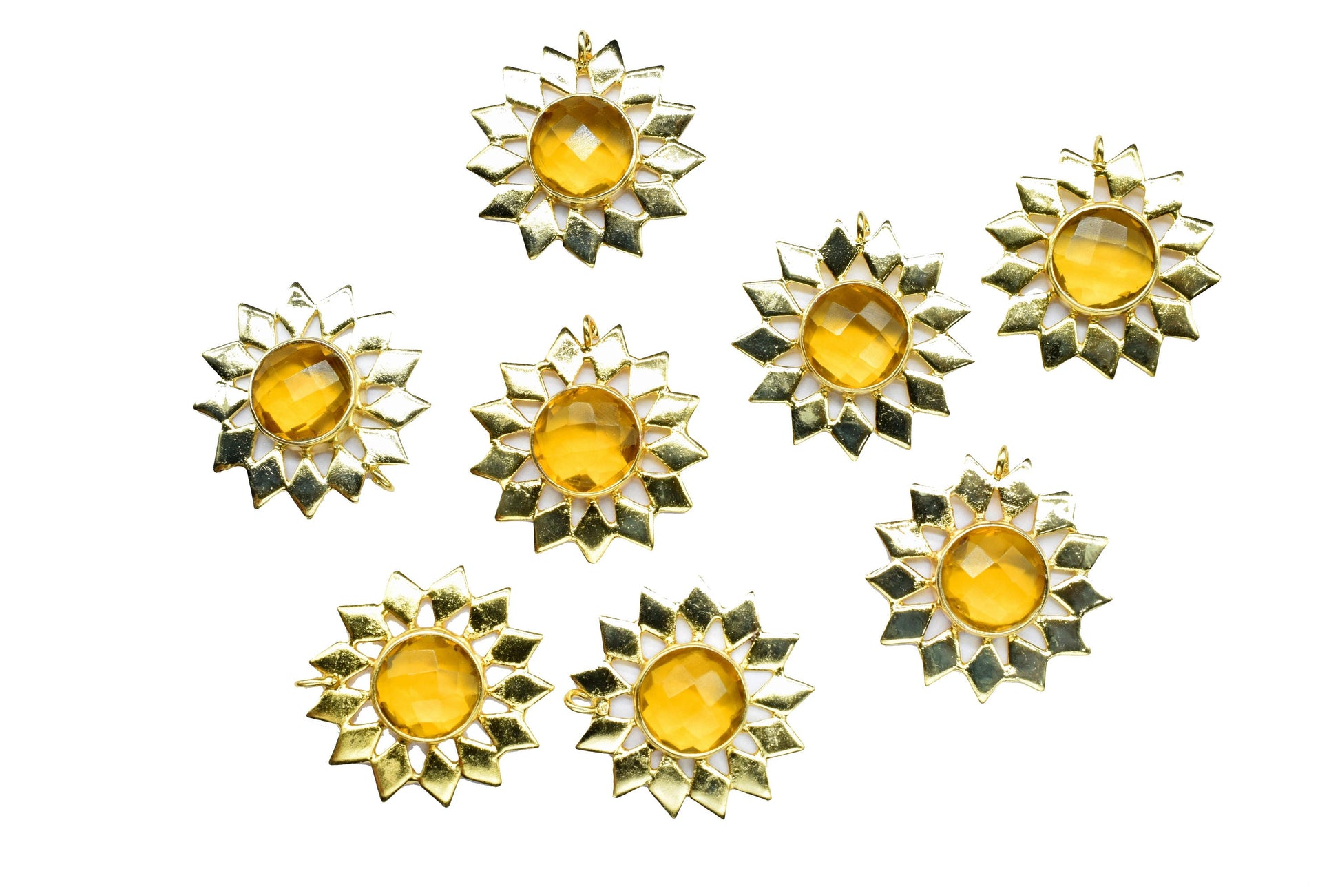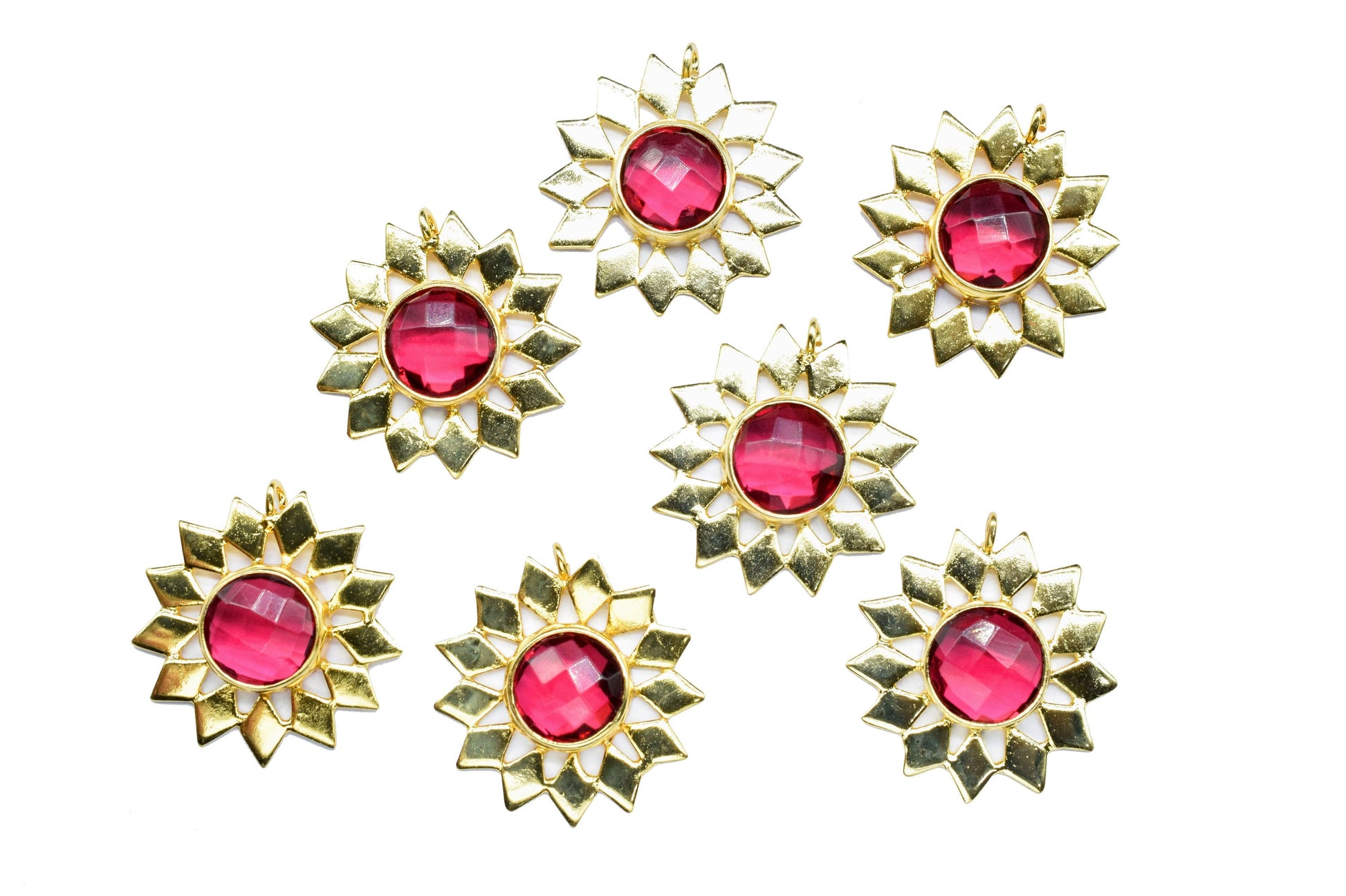 Handmade Findings Pendants,Flower Pendant Charms,Gemstone Beads Jewelry,Station Bezel Link,Craft Supplies,Star Charms Single Bail Connector
