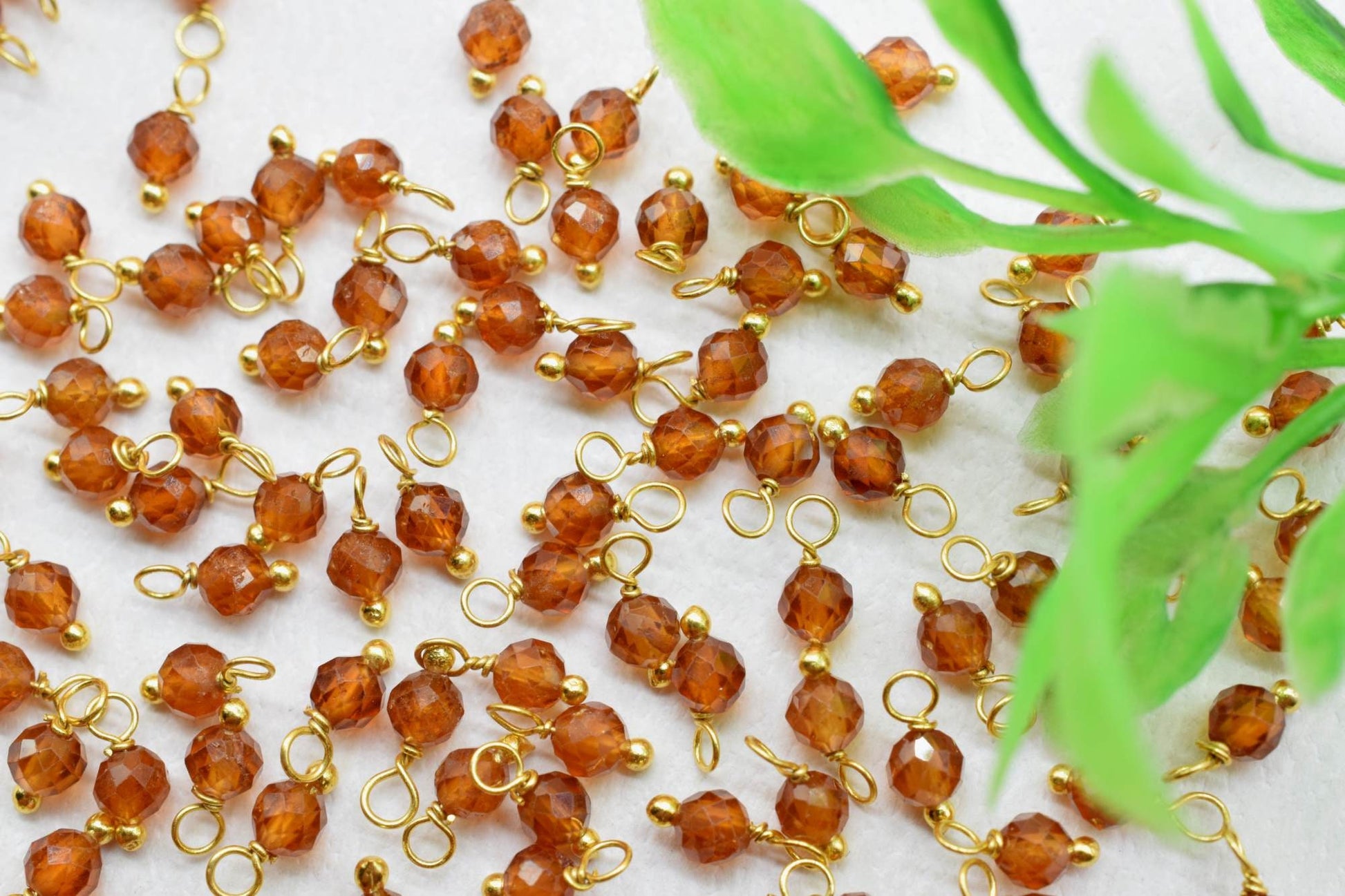 Hessonite Garnet Single wire wrapped Beads,Earring Connectors,Hessonite Garnet Faceted Beads,Hanging Beads,Jewelry Making Supply,Tiny Charms