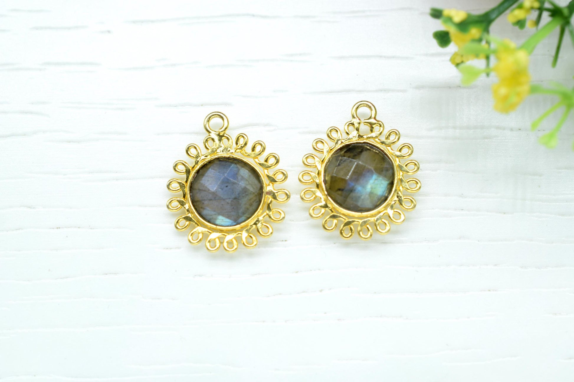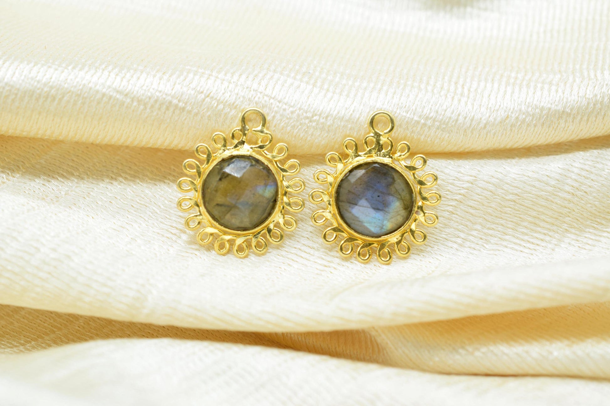 Labradorite 10mm Round Bezel Charm,Gemstone Brass Component,Single Bail Pendant,Round Faceted charms,Handmade Jewellery Connector,Gift