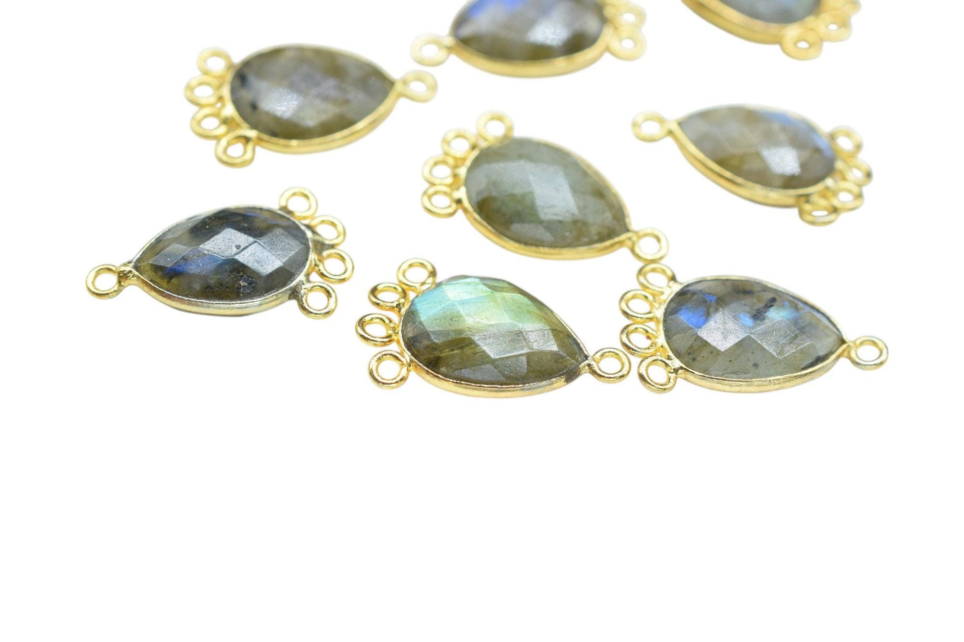 Labradorite 10x14mm Teardrop Bezel Charm/Charms Connector/Handmade Jewellery Connectors/Gemstone Brass Component/Women Jewelry/B'day Gift