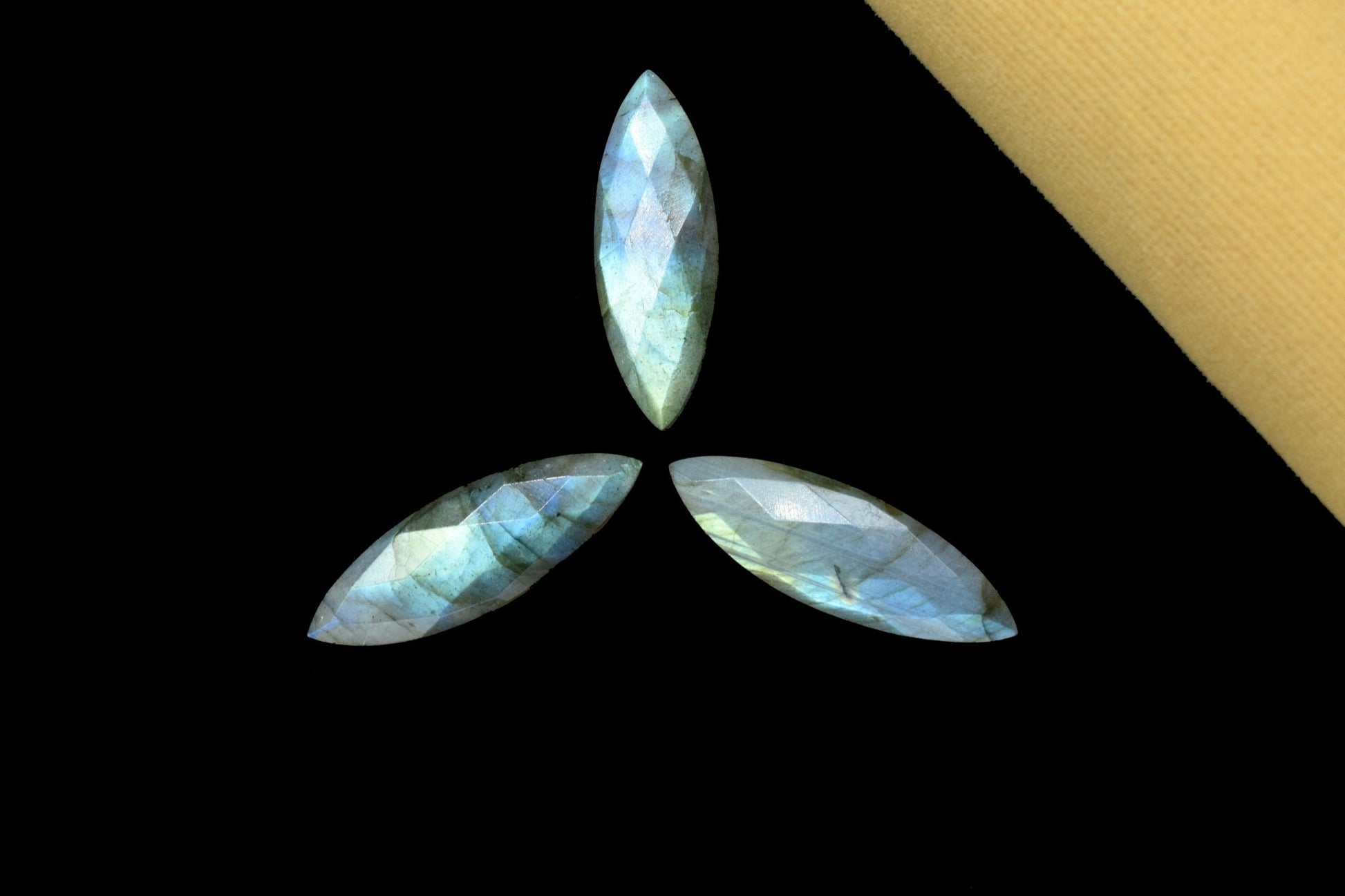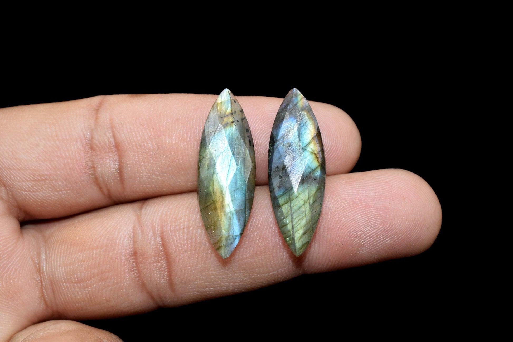 Labradorite 10x30mm Faceted Cabochon, Checker Cut Cabochon Jewelry, Gemstone Jewelry, Faceted Briolette Marquise Shape,Jewelry Making Supply