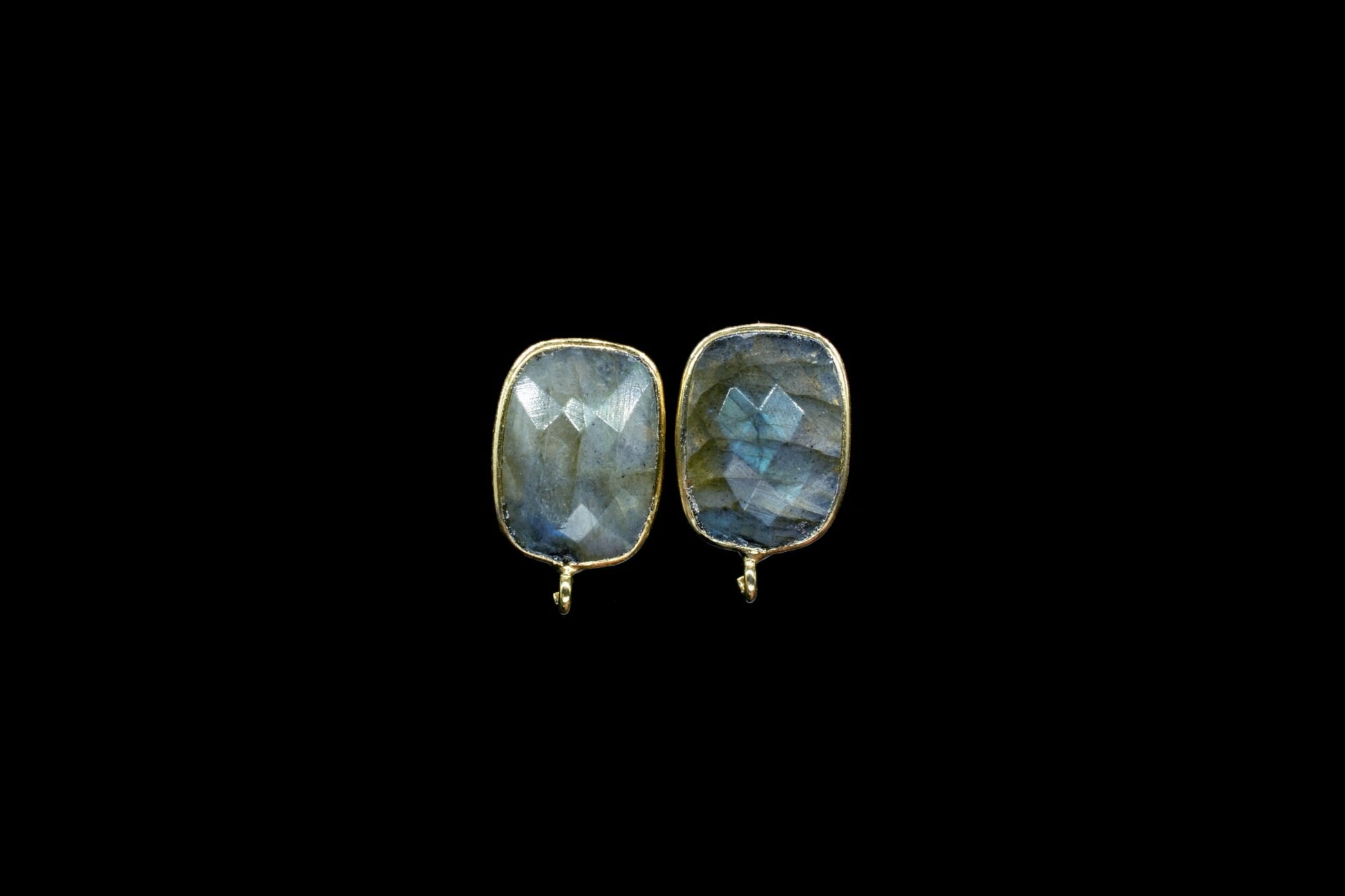 Labradorite 12x16mm rectangle Earring Connector,Jewelry Making,Sapphire Connector post stud,Gold Plated Earring Connector,Rectangle Studs