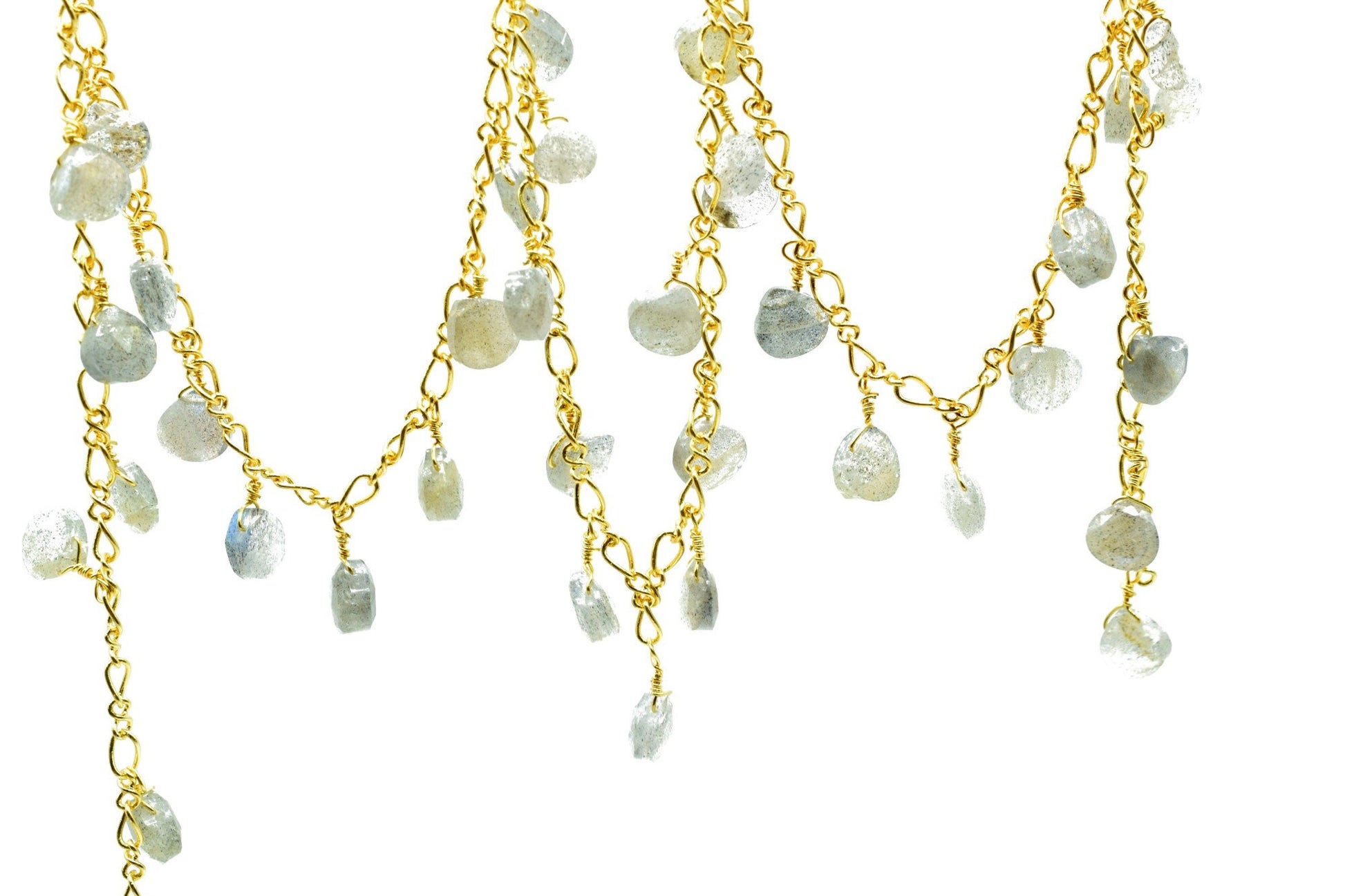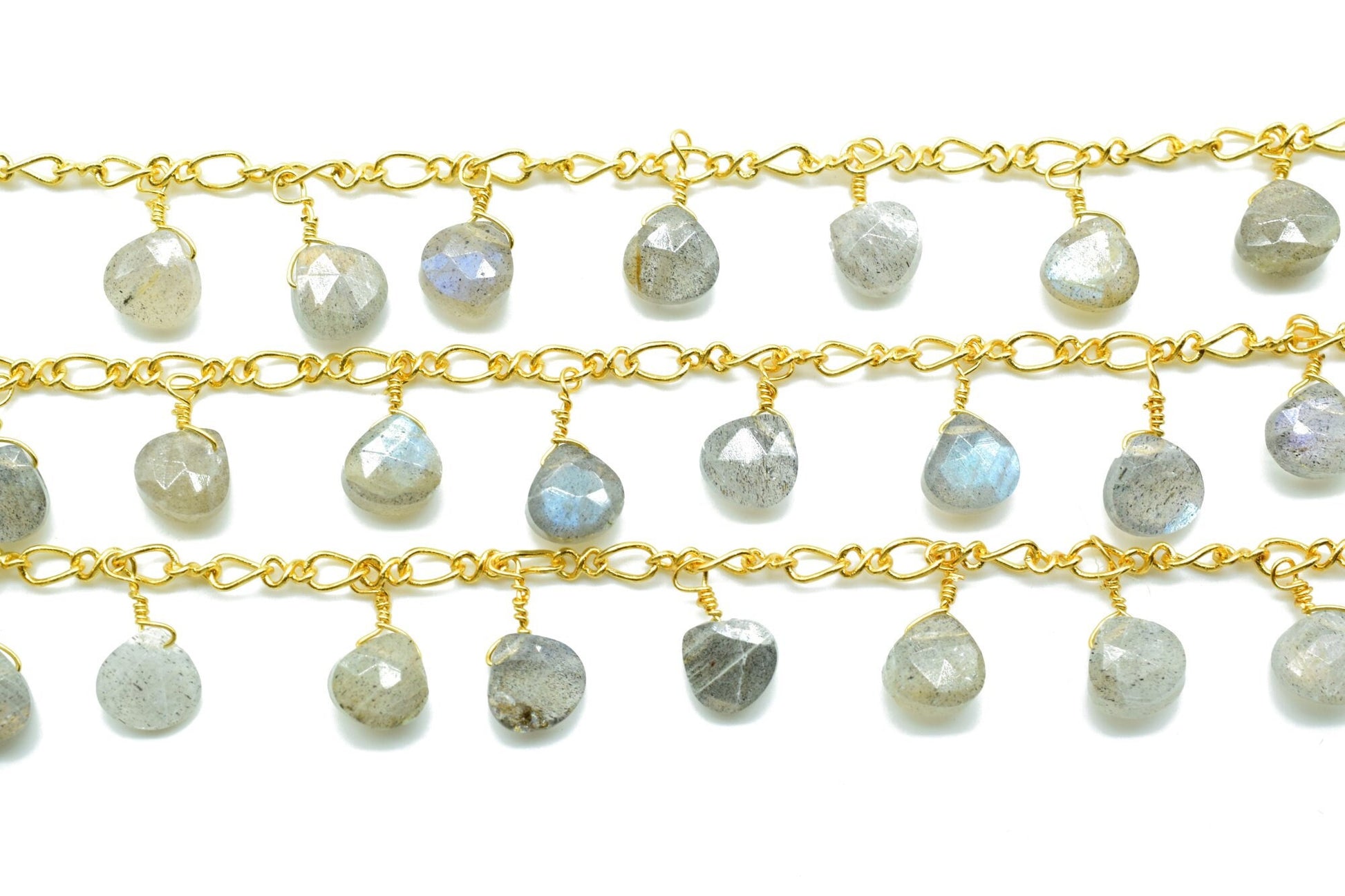 Labradorite 6mm Heart Shape briolette Chain,Labradorite Heart Shape Rosary Chain,Sold By Foot,labradorite briolette beaded chain,labradorite