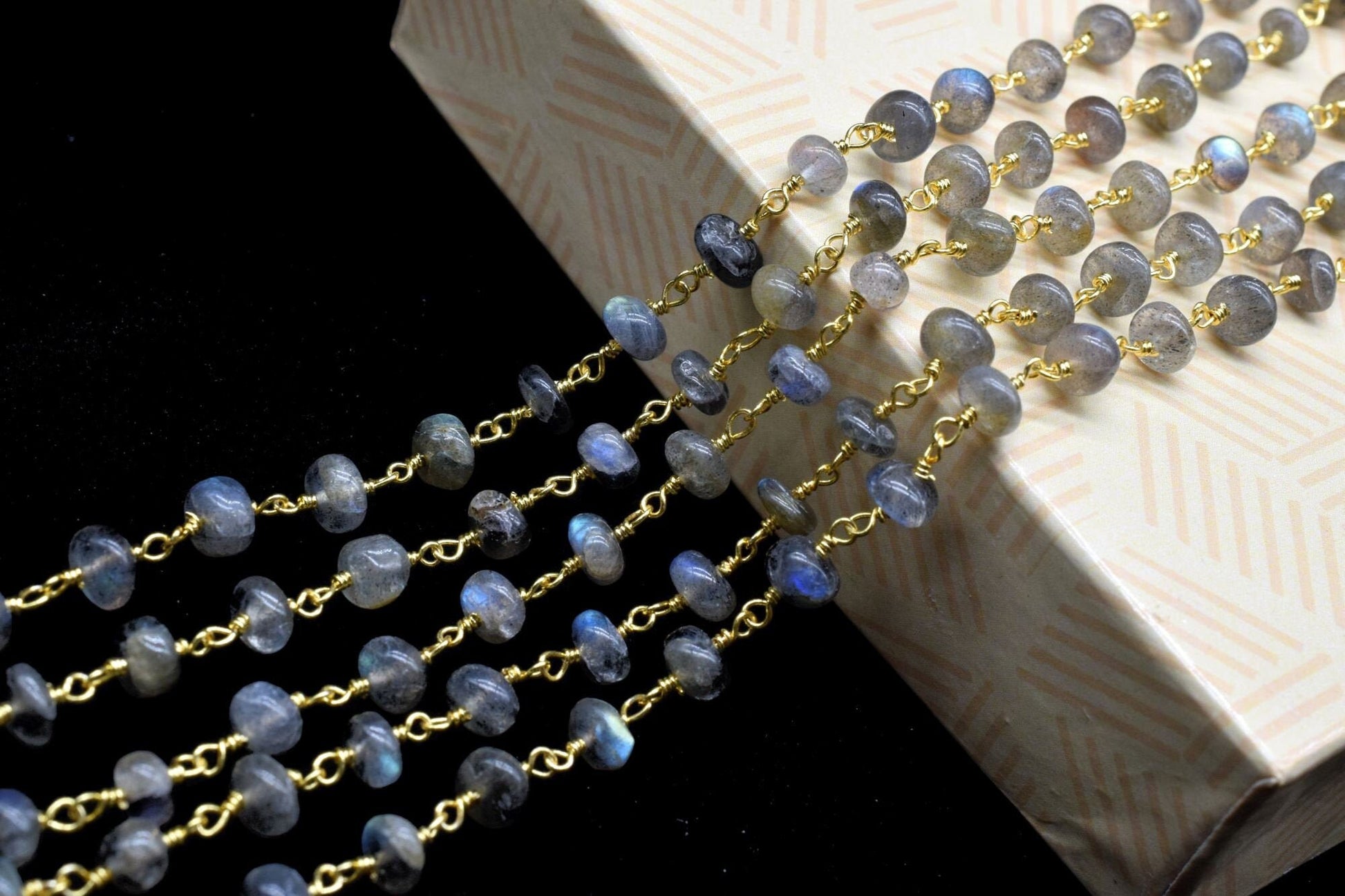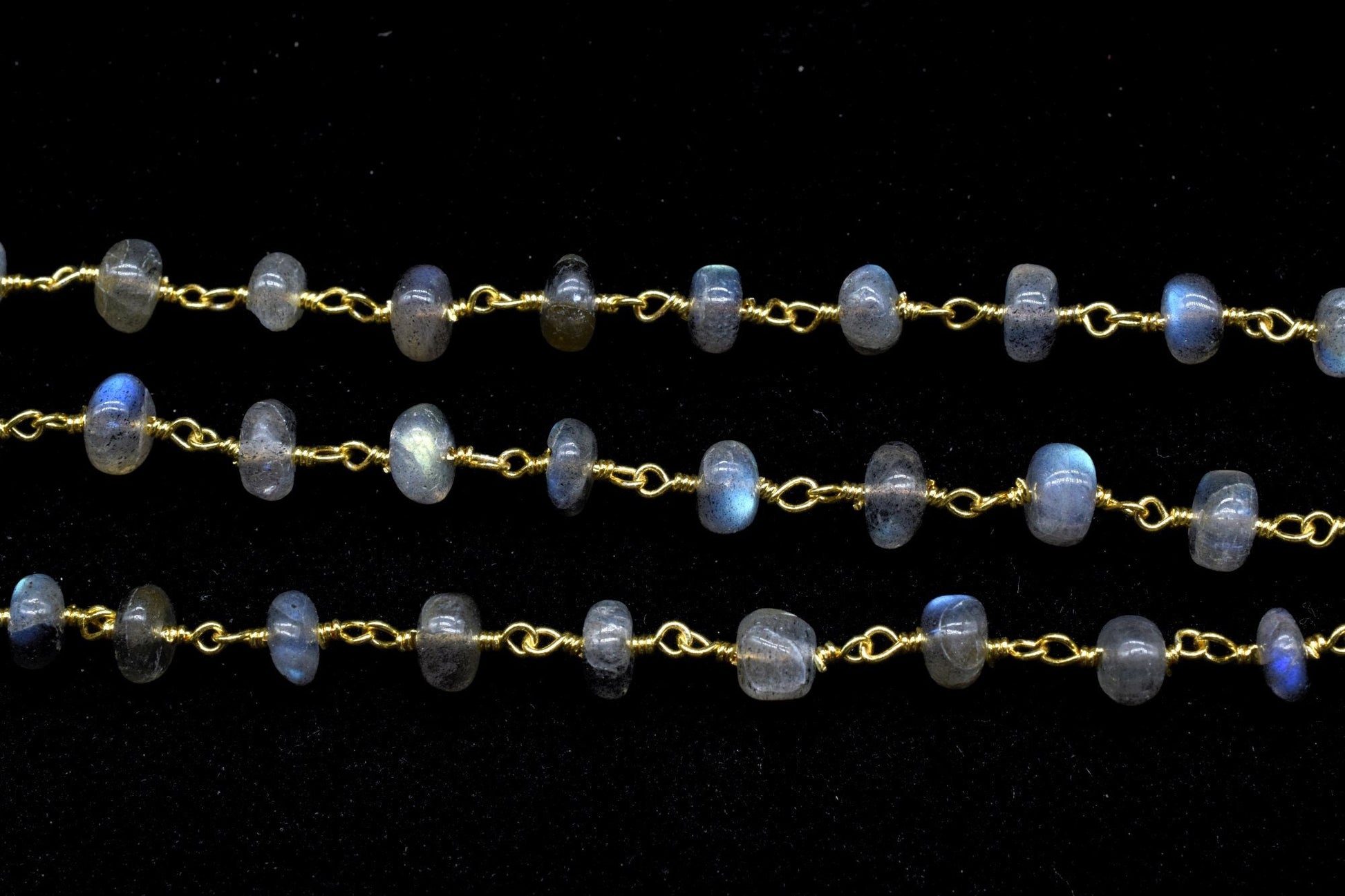 Labradorite 6mm Smooth rondelle Beaded Chain,Labradorite Gold Rosary Chain,Gemstone Chains By the Foot for Rosary Necklace,Rosary Roll Bulk