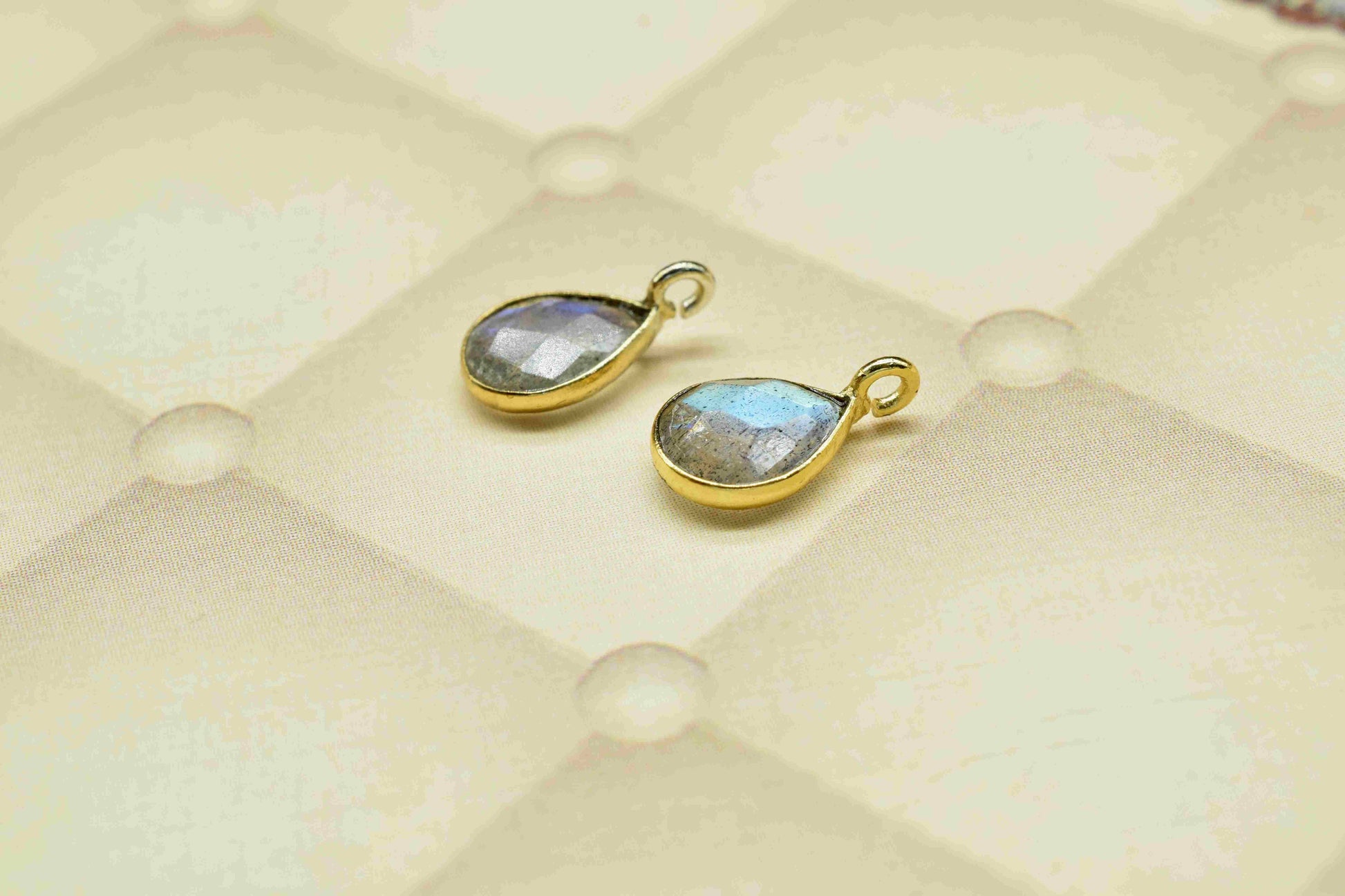 .Labradorite 6x8mm Teardrop Connector,Stud Earring Connector,Labradorite Jewellery,Jewellery Findings, Single Loop Connector,June birthstone Gift