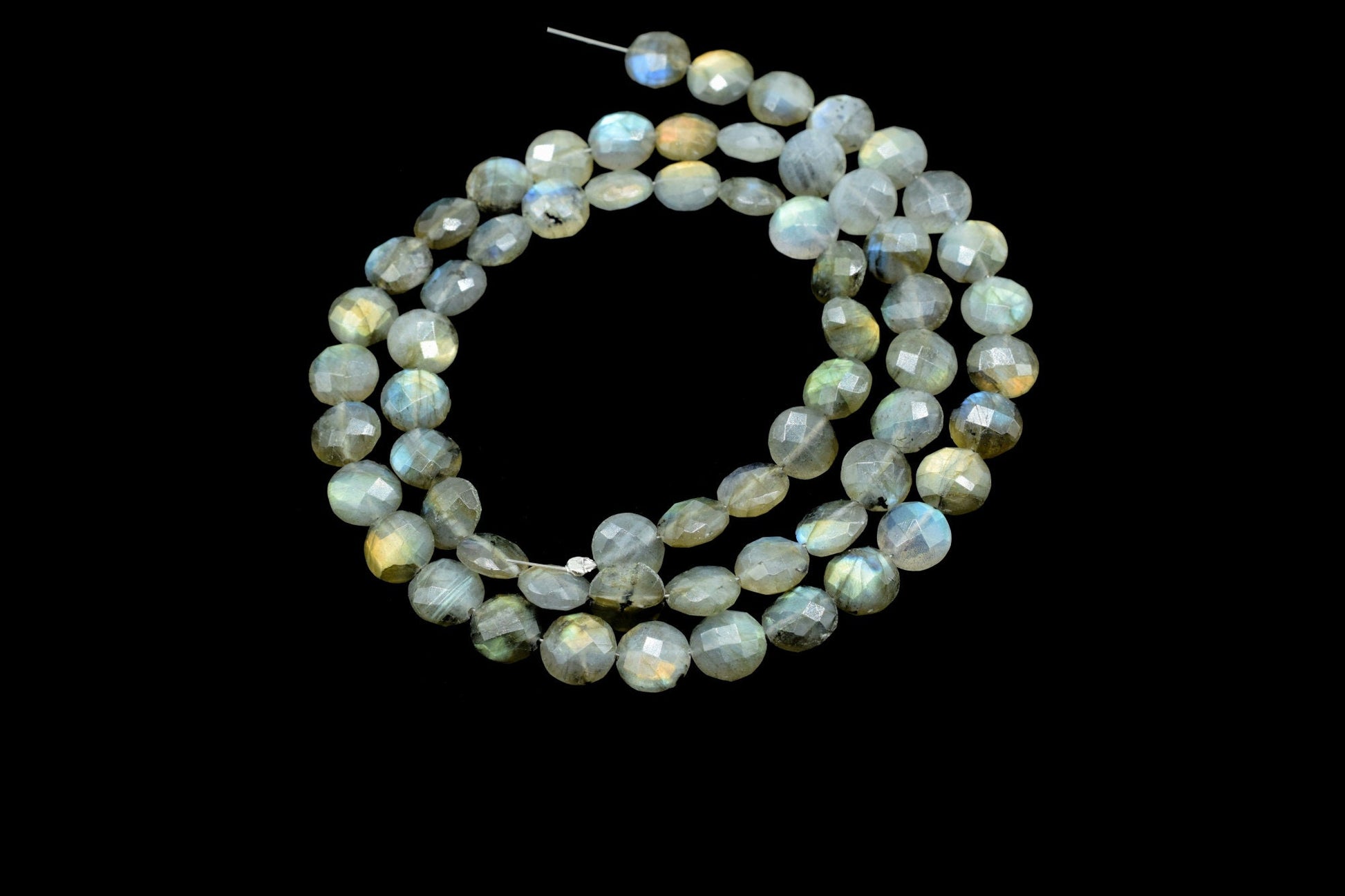 Labradorite 8mm Coin Shape Beads,Faceted Briolettes,Gemstone beads, jewelry supplies,Flashy Labradorite Faceted Coins,Labradorite Briolettes