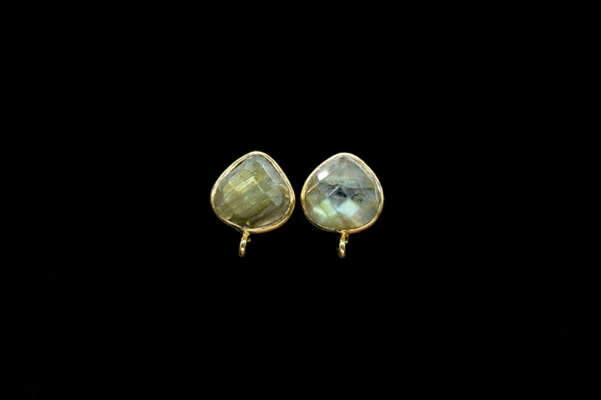 Labradorite 8mm Heart Shape Earring Connector,Gemstone Studs Connector,Craft Supplies,Jewelry Findings,Earring Making Connector,Labradorite