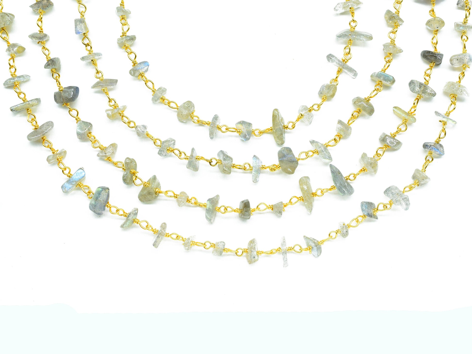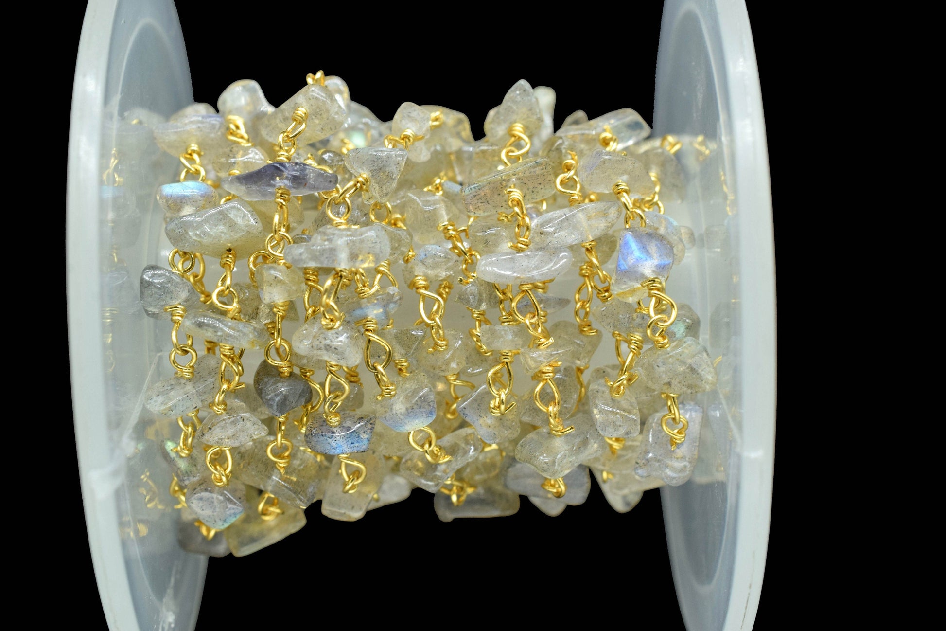 Labradorite Chips Rosary Chain,Nugget Rosary Chain,Finding Wire Wrap Necklace Chain,Gemstone Rosary Necklace,Handmade Jewelry Carft Supplies