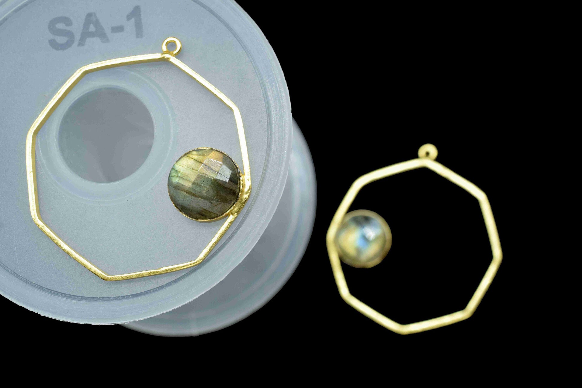 .Labradorite Gemstone Component Hexagon Shape Single Bail Charm,Labradorite Connector Pendant, Finding Gold Plated Connectors, Pendant Jewellery