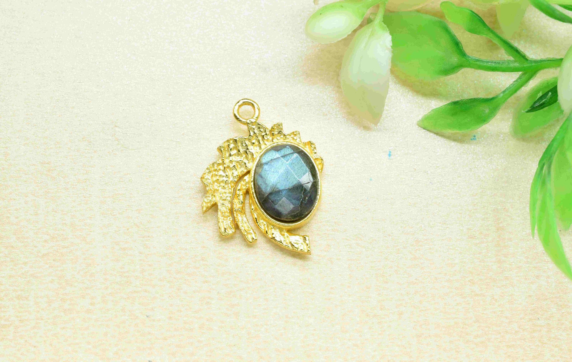 Labradorite Pendant , Gemstone Handmade Pendant , Bulk Gemstone Pendant , Gold Plated Connectors ,Single Bail Gemstone Connector Charm