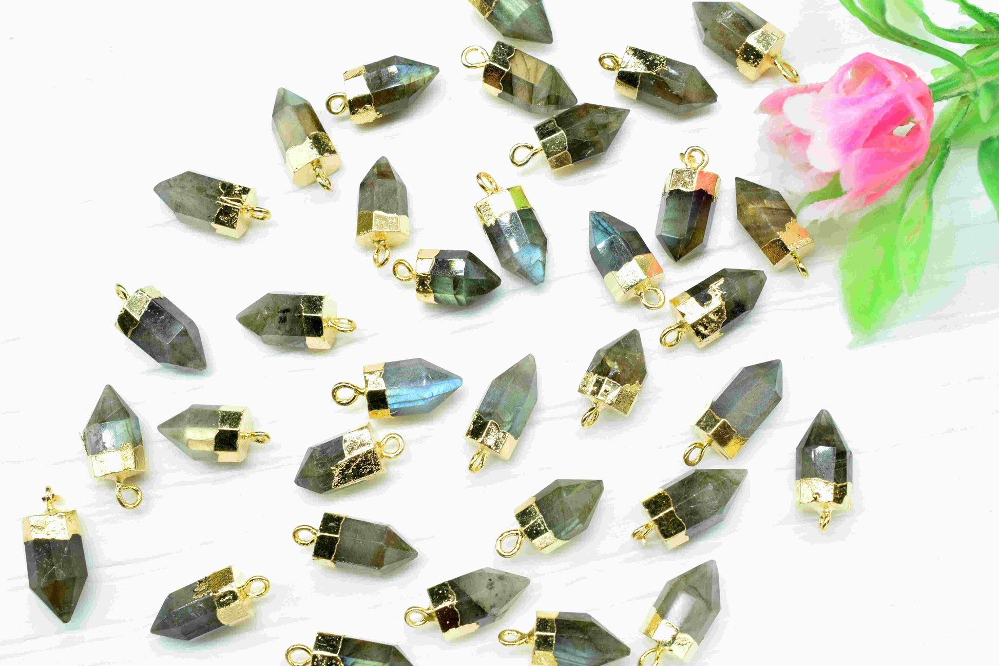 .Labradorite Pointed Pendant,Pencil Connector,Gold Vermeil Tiny Point Pendants,Statement Pendant,Gemstone Pendant,Handmade pendant Jewelry