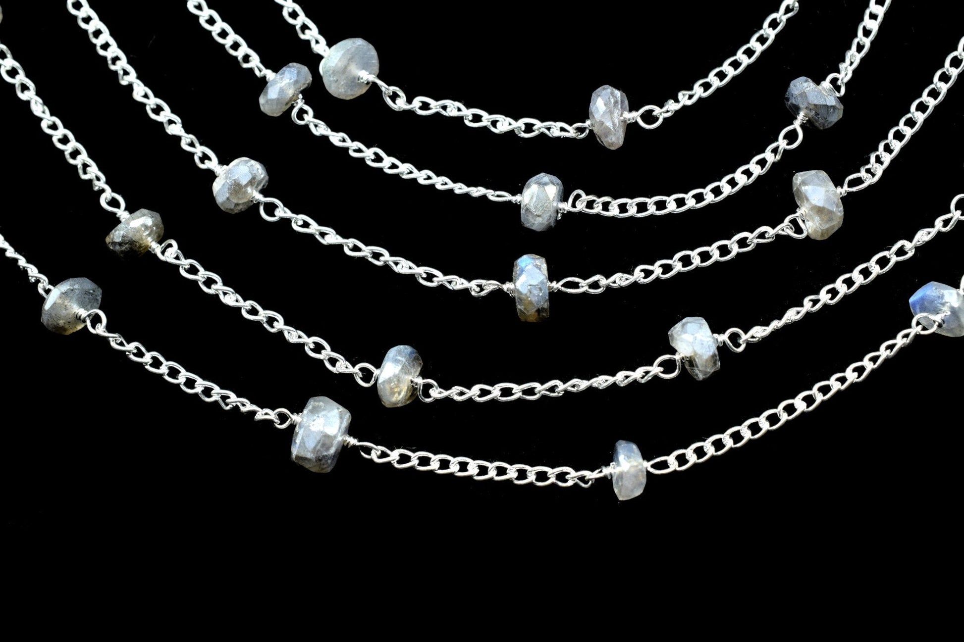 Labradorite Rosary Chain,Labradorite Coted Beads Rosary,Jewelry Making Rosary,wire wrapped Rondelle chain by foot,Gemstone Bead Chain,Rosary
