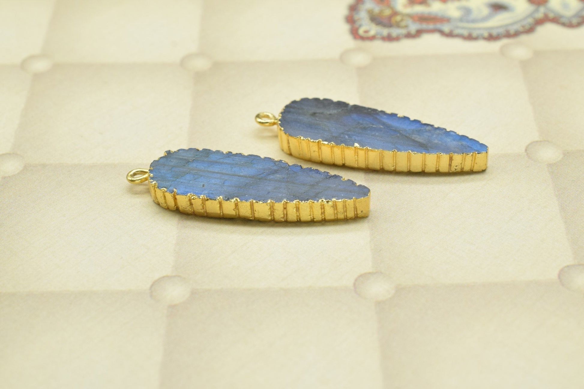 .Labradorite Teardrop Pendant,Single Bail,Necklace Connectors,Labradorite Jewelry,Gemstone Electroplated Charm,Handmade Pear Shape Connector