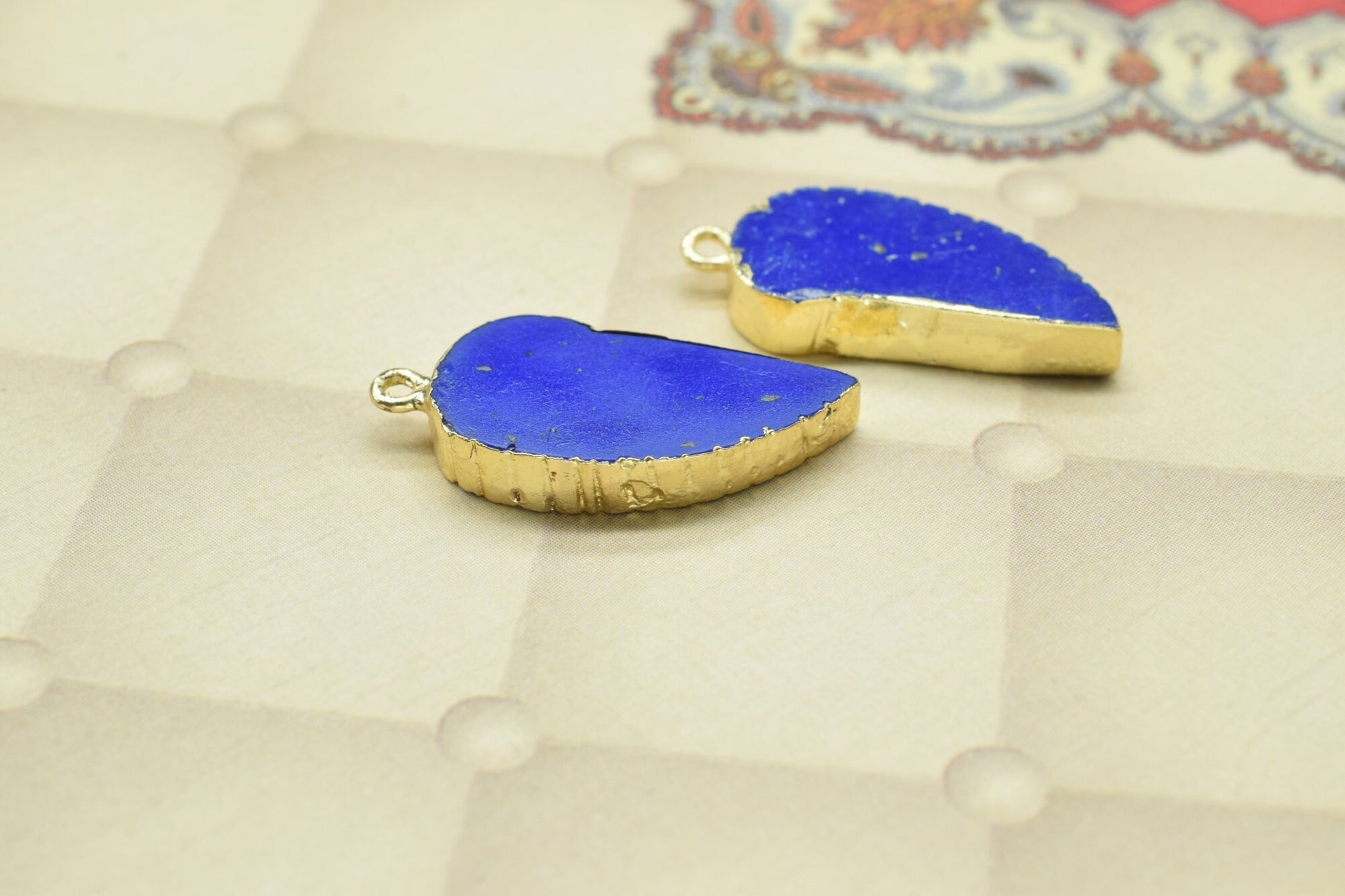Lapis Lazuli Angel Wings Pendant,Handmade Pendant,Wing Pendants Charms Necklace,Single Bail Connector,Gemstone Leaf Earring Connector,Gift