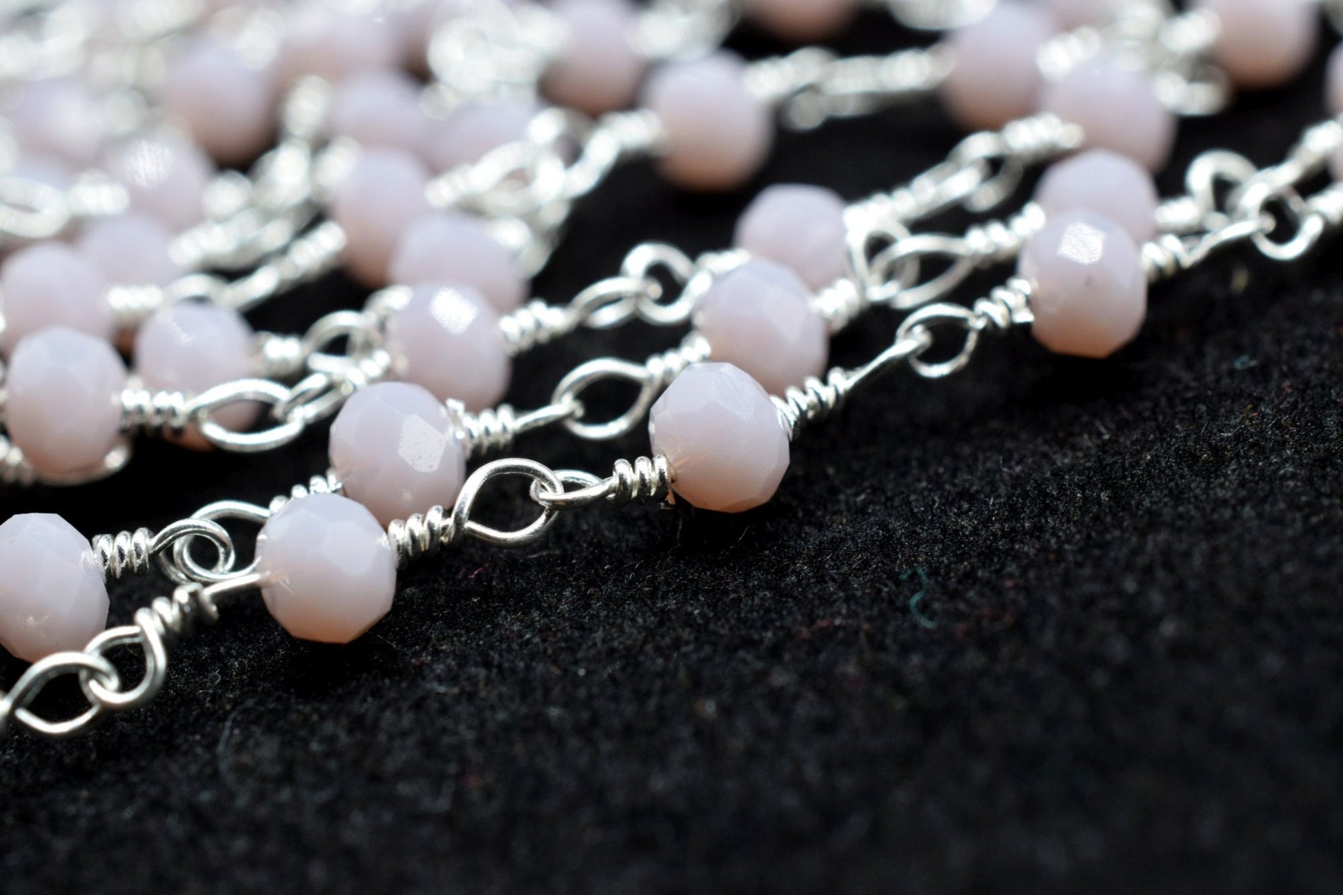 Lavender 3mm Beaded Chain,Lavender Rosary Chains,Lavender Gold Plating Wire Wrap Chain,Lavender Brass chain,Jewelry Making ChainRosary chain