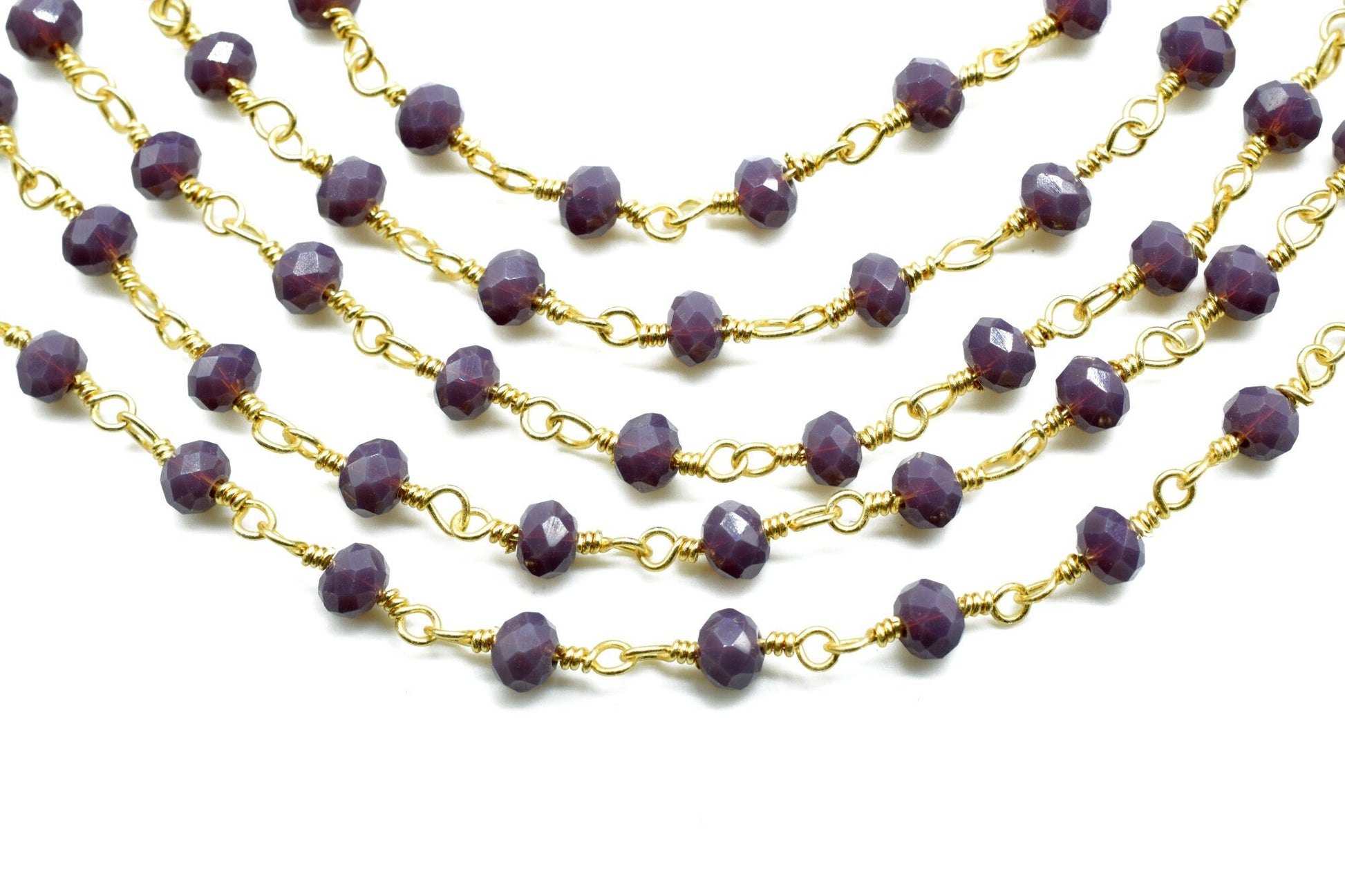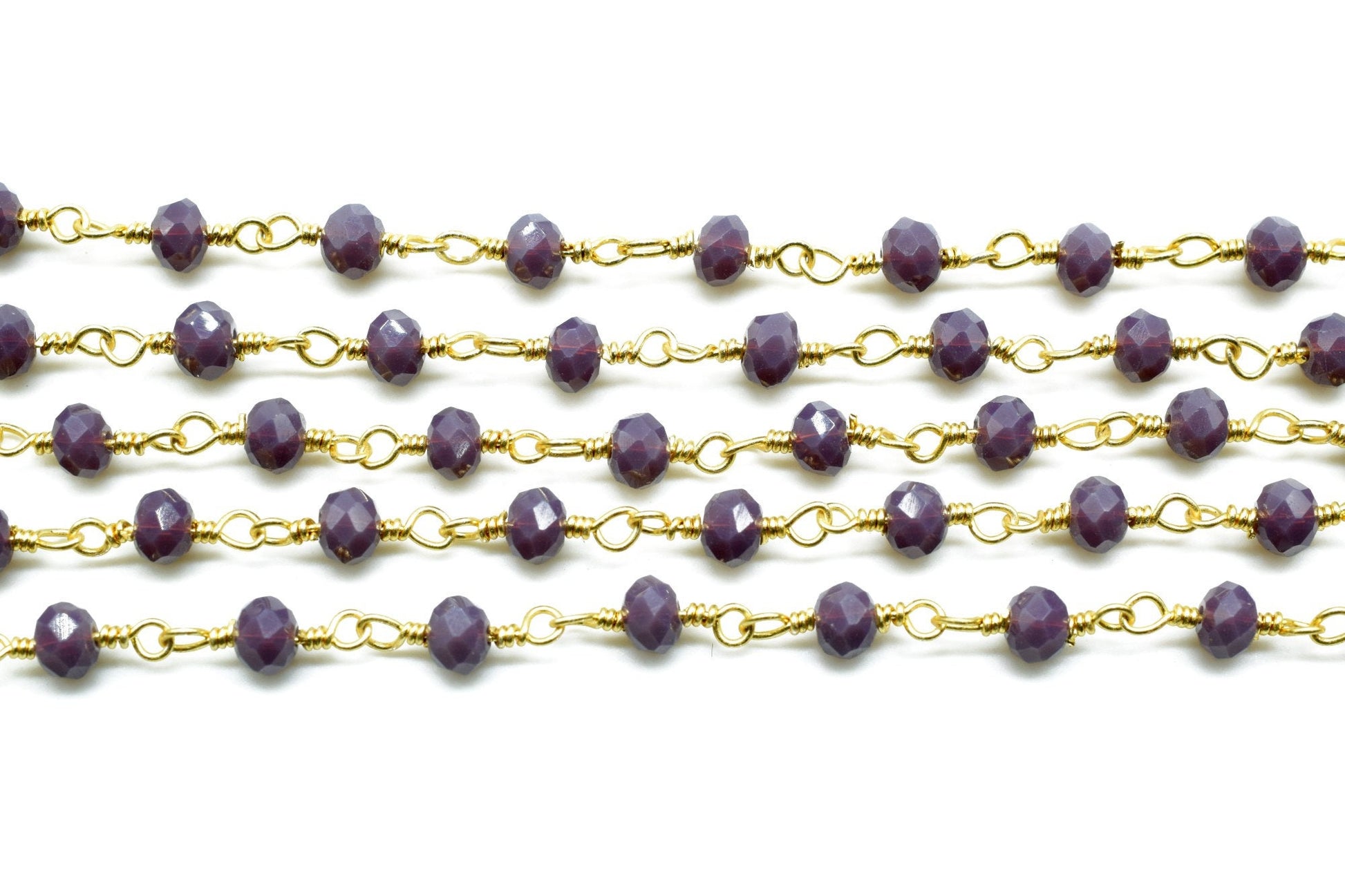Lavender Gold Plated Rosary Chain,3mm Lavender Faceted Beaded Rosary,Gold Plated Rosary,Rosary Chain By Foot,Bulk Rosary Roll,Wire Wrapped