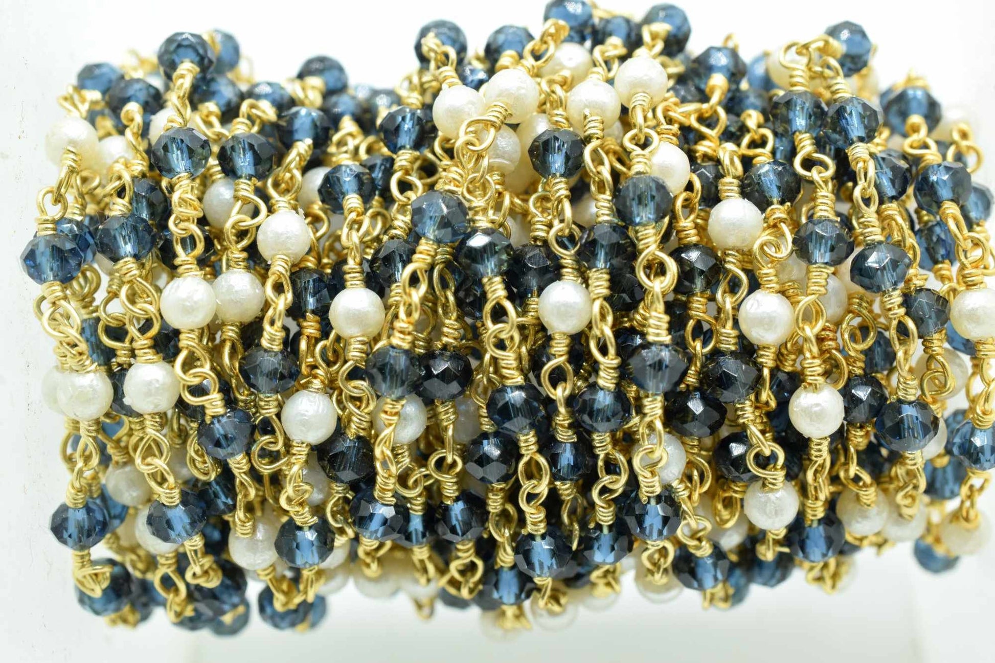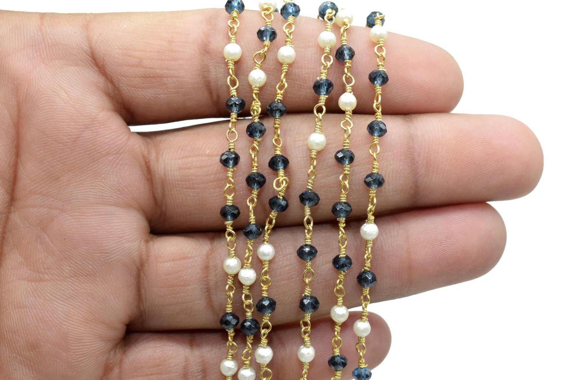 London Blue Topaz Beaded Rosary Chain,Pearl Beaded Rosary Chain,jewelry making Chain,Gemstone Rosary,wire wrapped rosary,3mm Beaded rosary