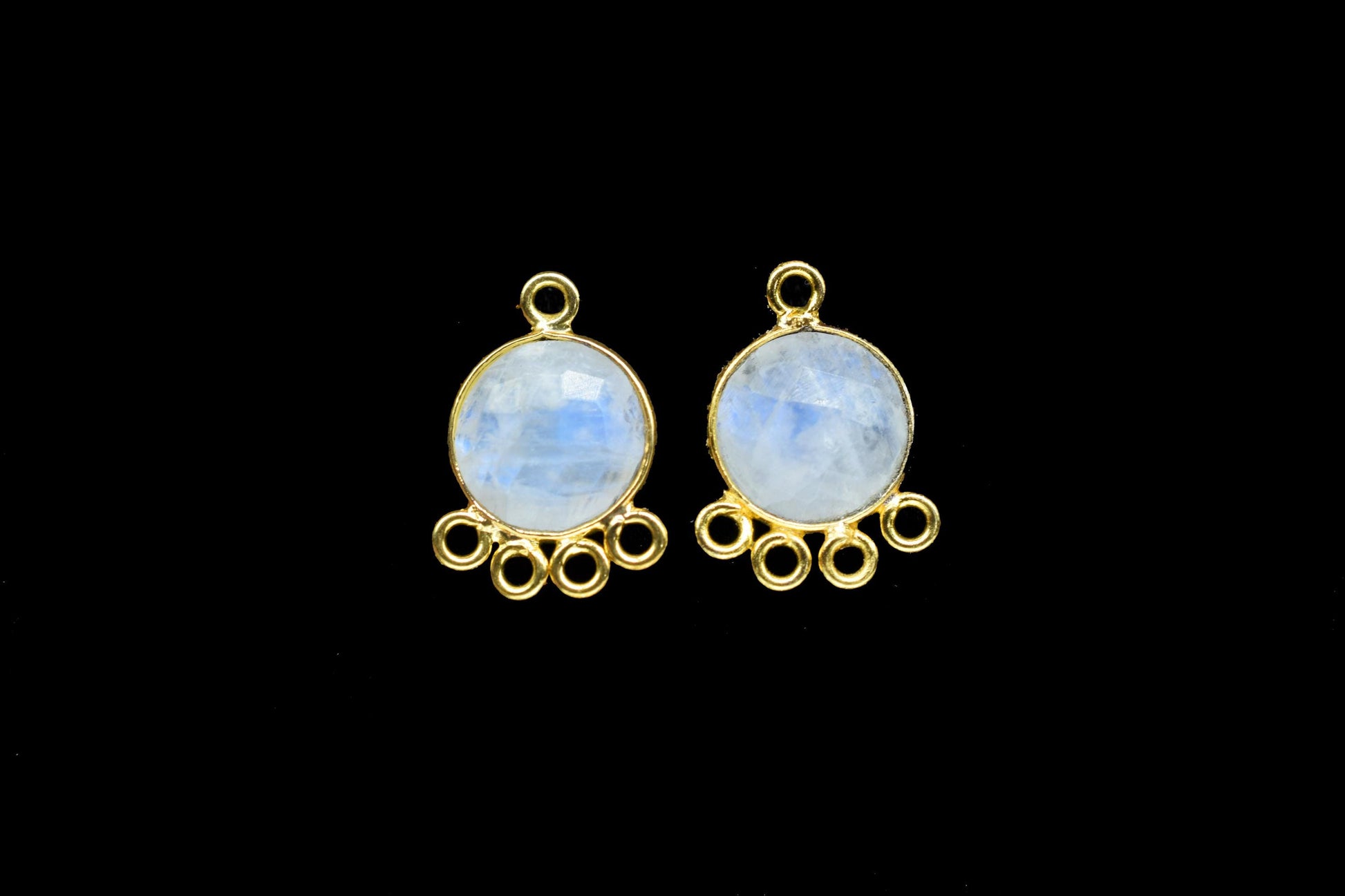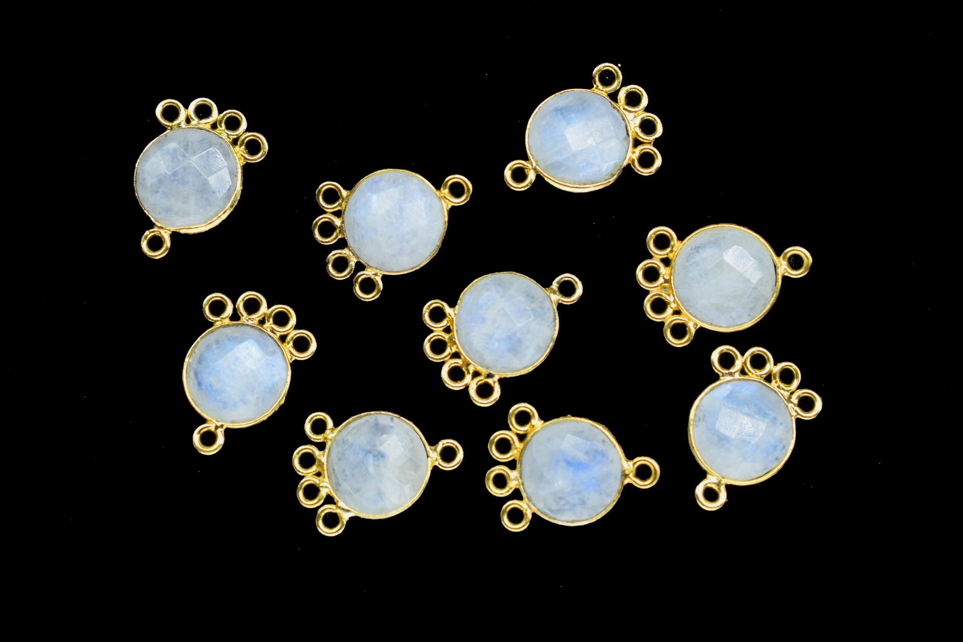 Moonstone 10mm Round Bezel Charm/Gemstone Brass Component/Single Bail Pendant charms/Round Handmade Jewellery Connector/B'day Gift