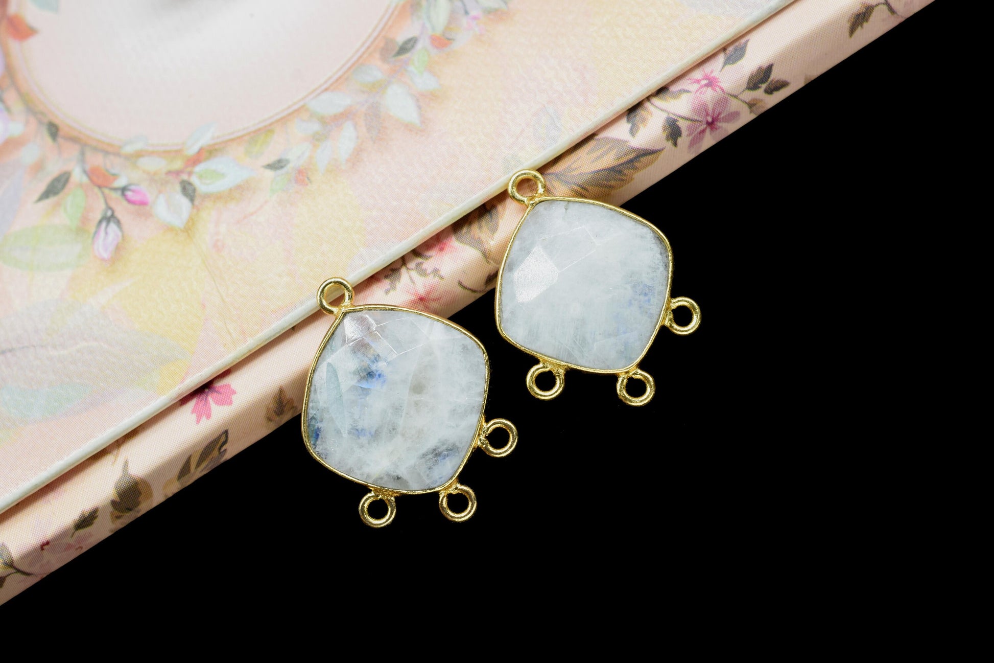 Moonstone 14mm Components Station Bezel Jewelry Supplies,Rainbow Moonstone charm Pendant Jewelry,Rainbow Single Bail Brass Gold Edge Jewelry