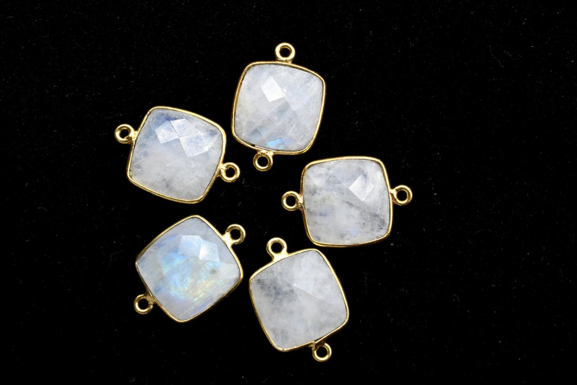 .Moonstone 14mm Cushion double bail connectors,Elegant Moonstone Gemstone Components Cushion Shape Connectors,Brass Gold Moonstone Jewelry