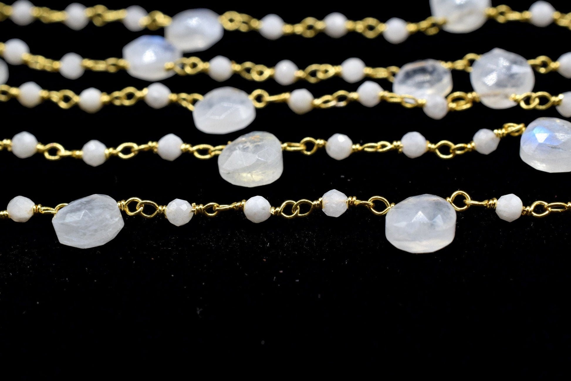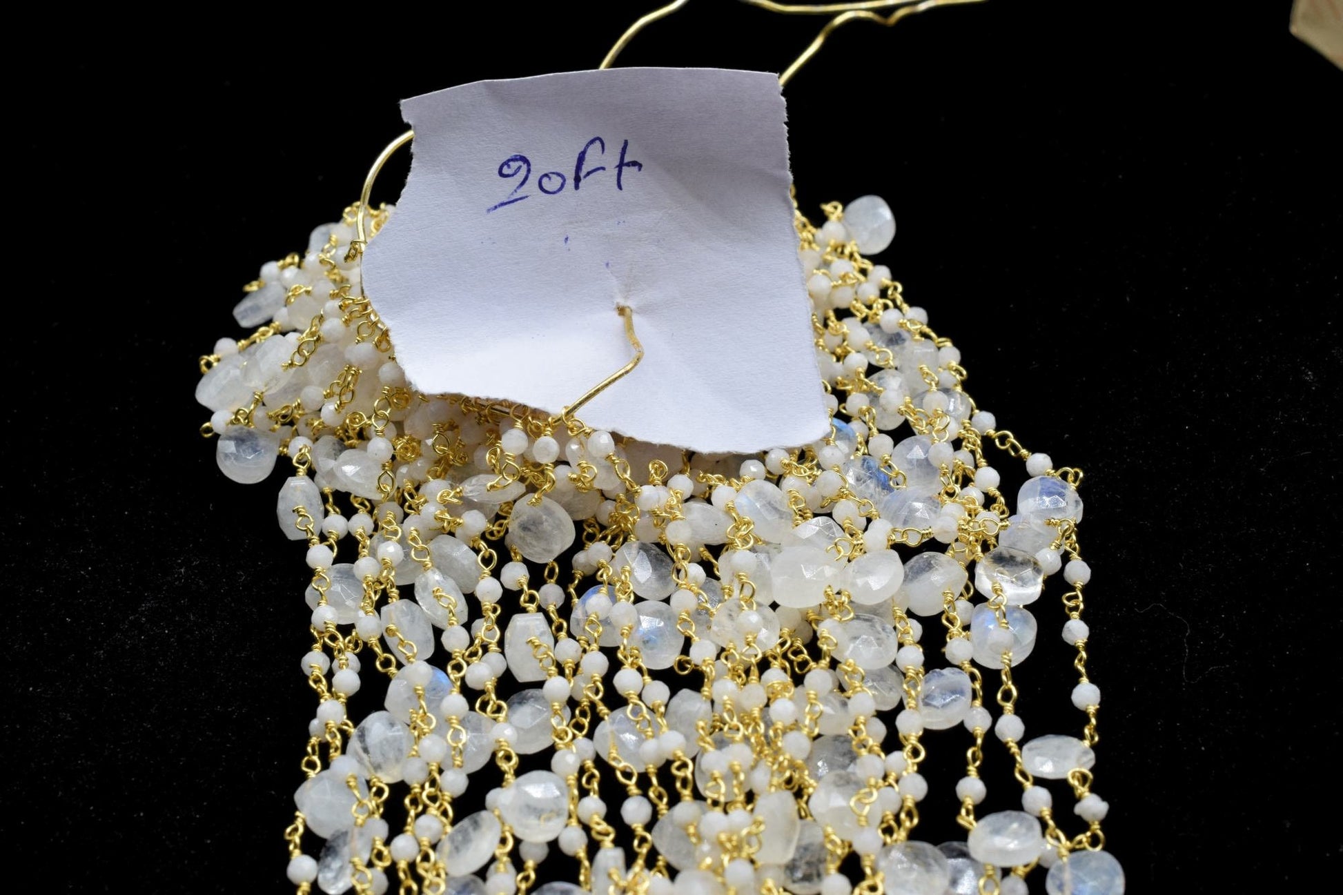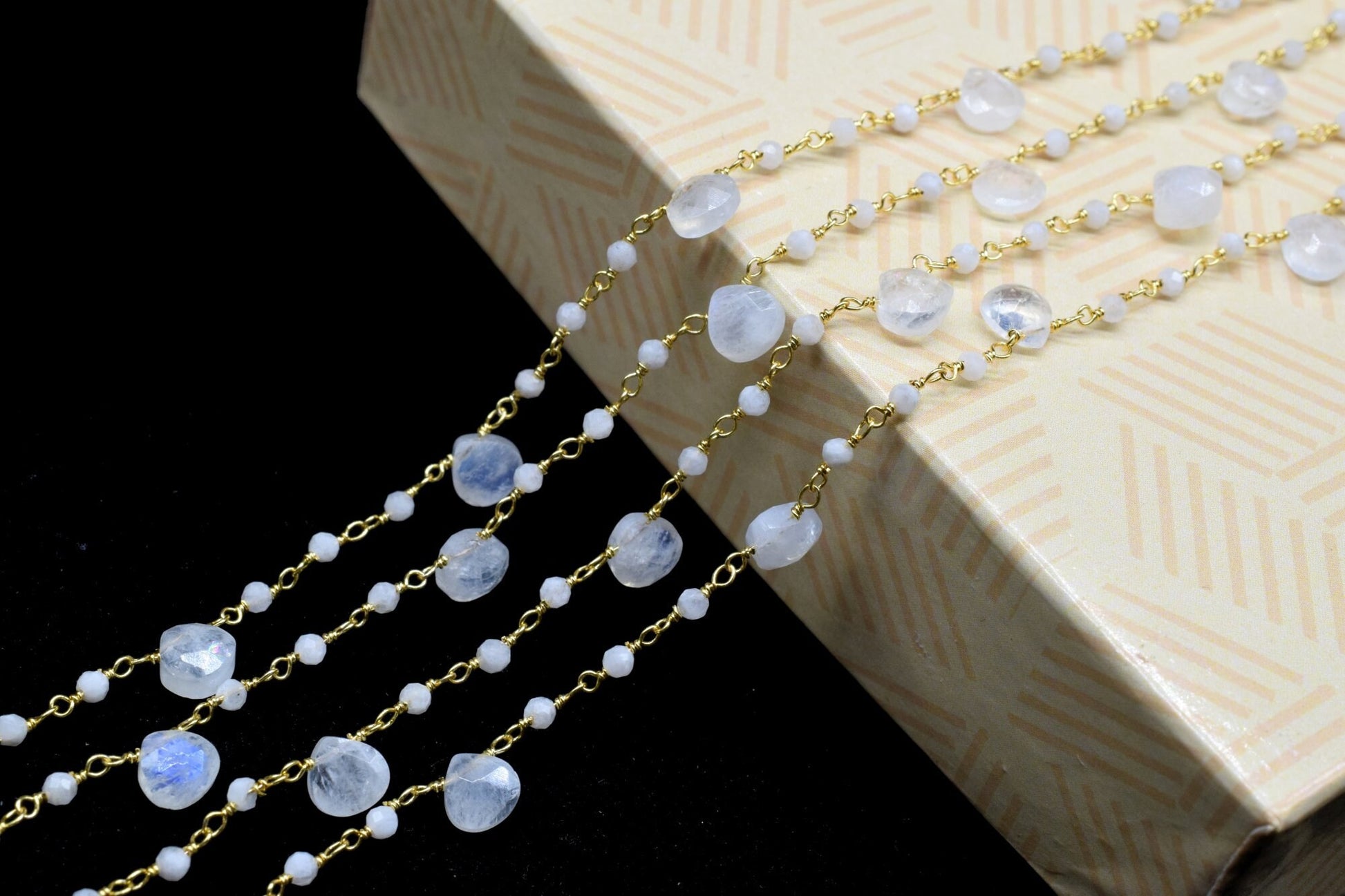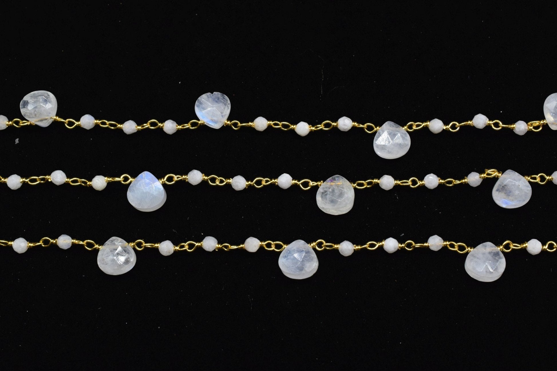 Moonstone 2mm Beaded Heart shape rosary Chain,Moonstone Heart Shape Rosary Chain,Sold By Foot,Moonstone briolettes beaded chain,Moonstone