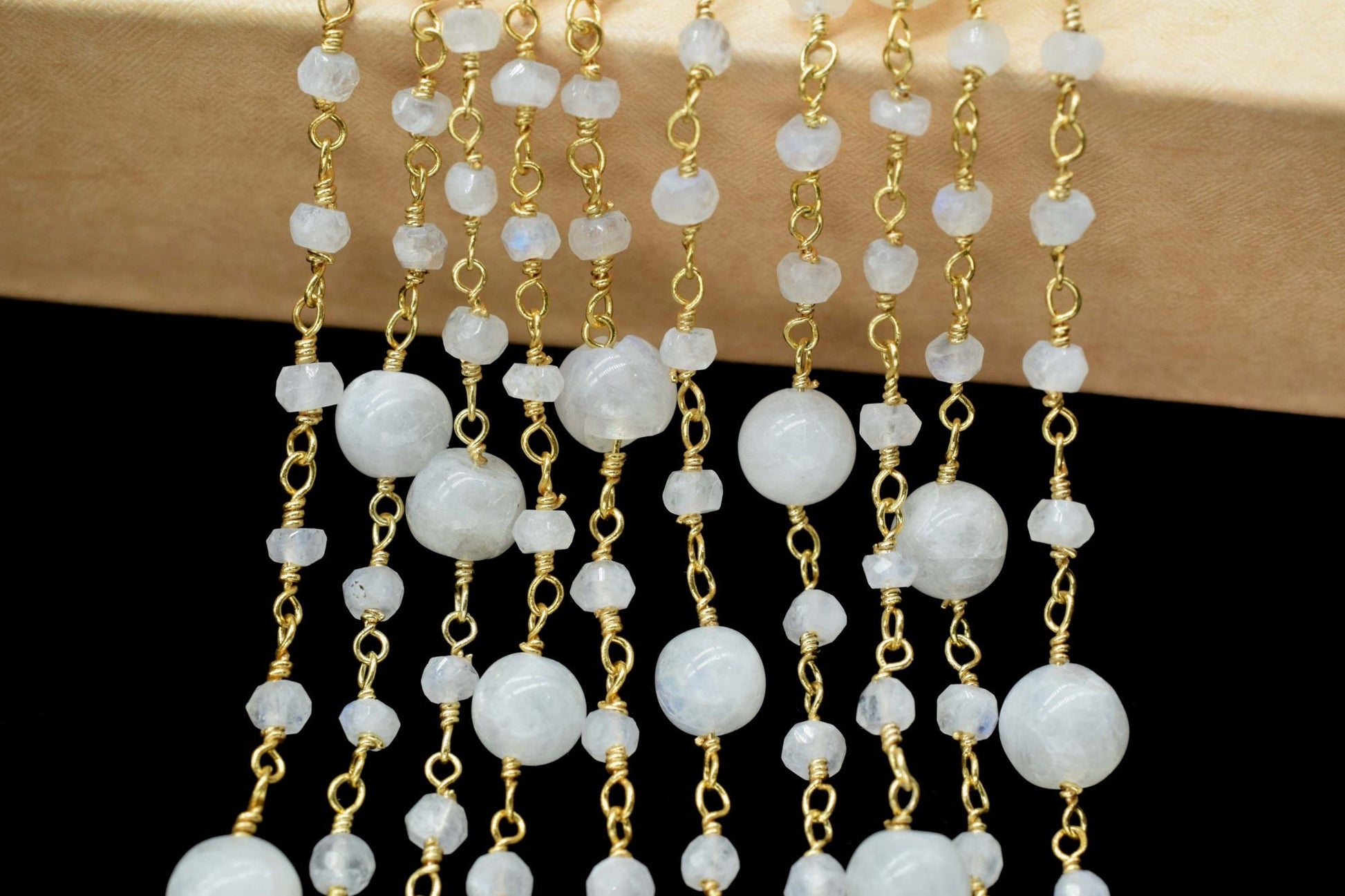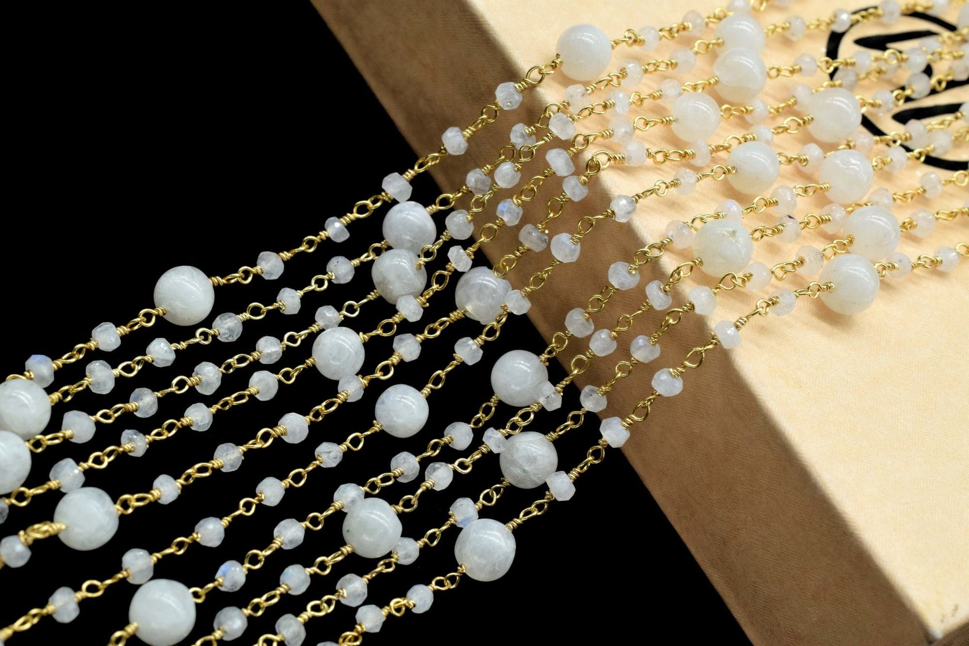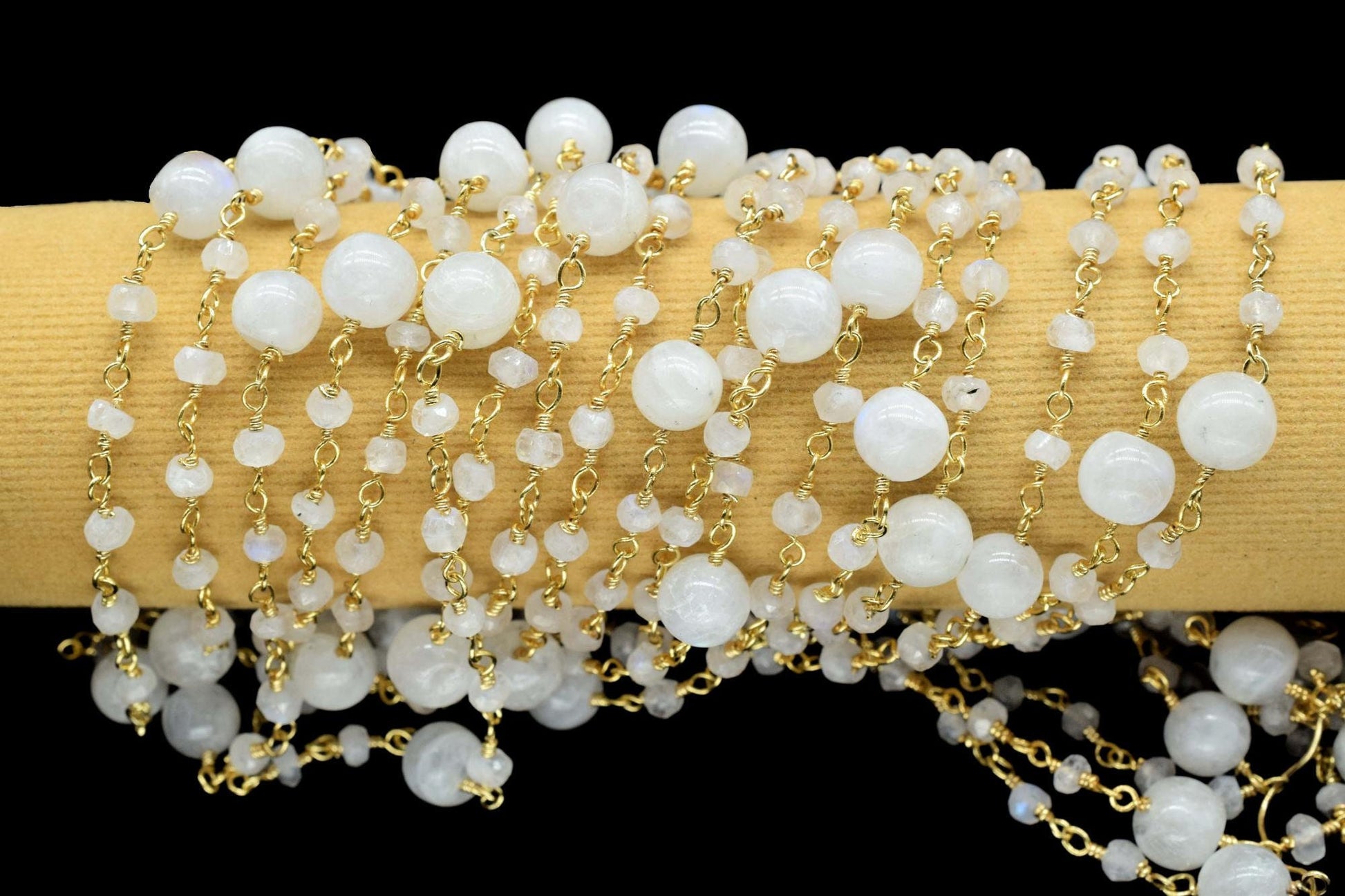 Moonstone 3mm Beaded Chain,Rainbow Moonstone round balls Rosary Chain,Gemstone Chains By the Foot for Rosary Necklace,Rosary Roll Bulk price
