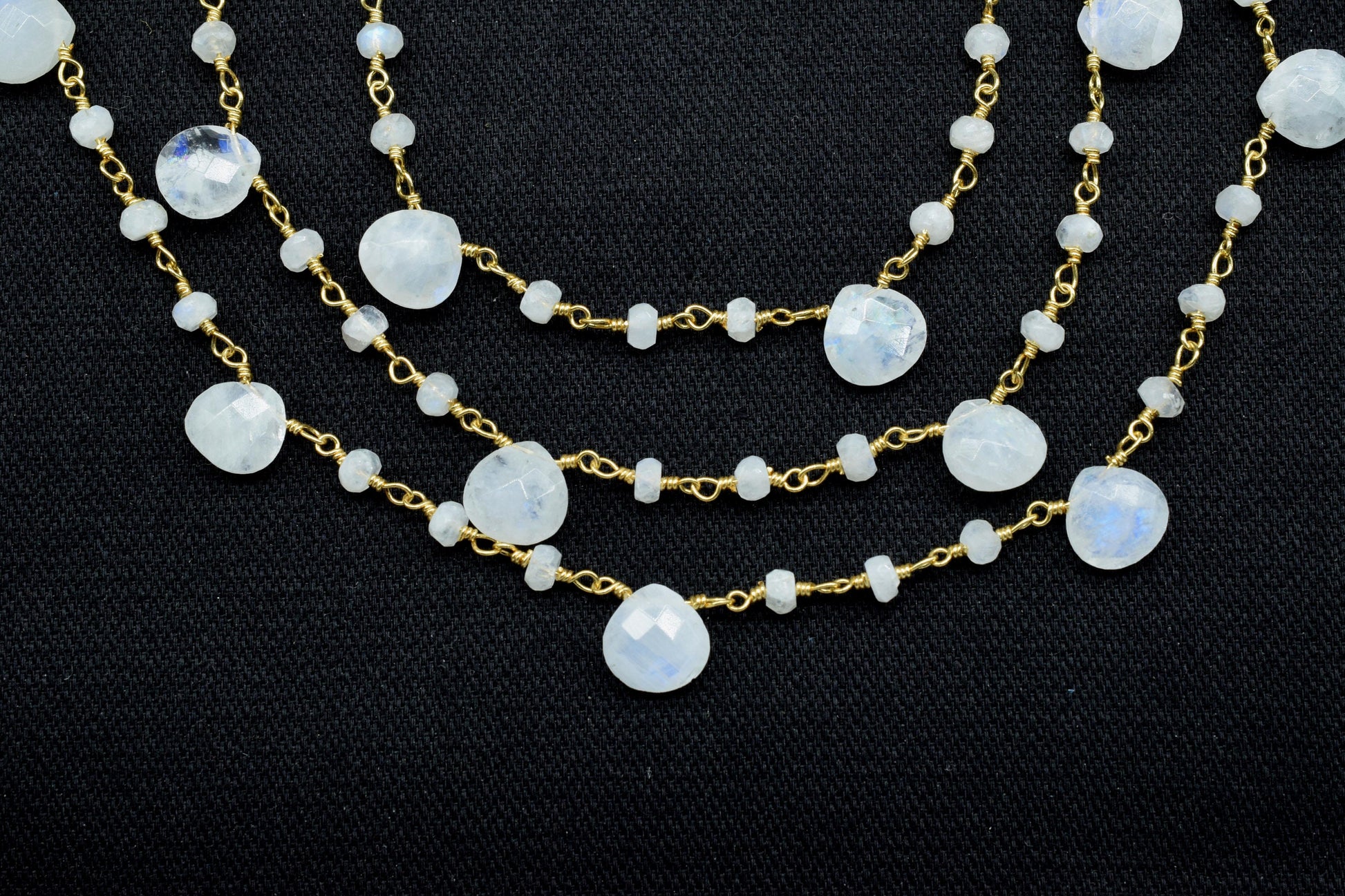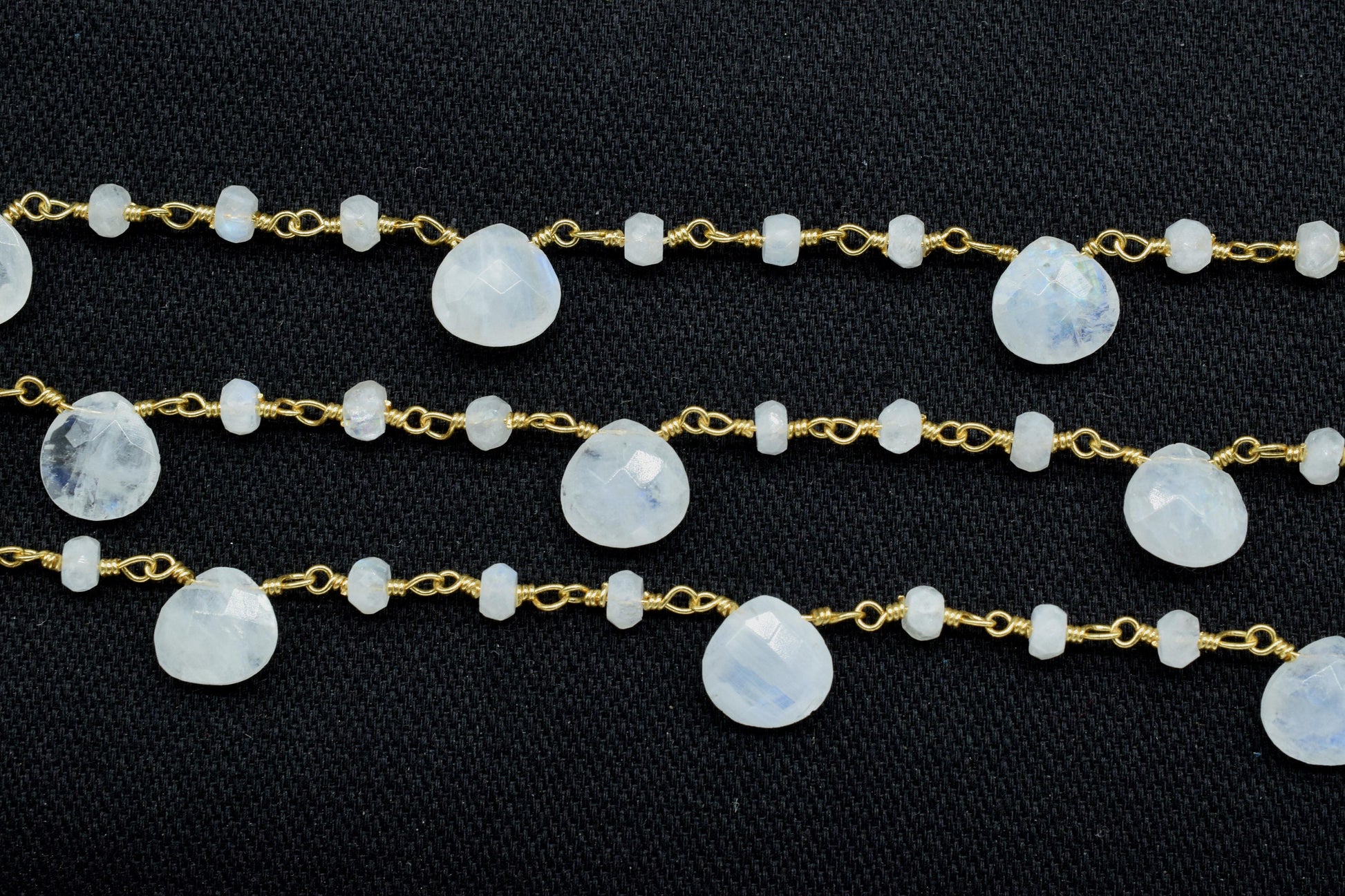 Moonstone 3mm Beaded Heart shape rosary Chain,Moonstone Heart Shape Rosary Chain,Sold By Foot,Moonstone briolettes beaded chain,Moonstone