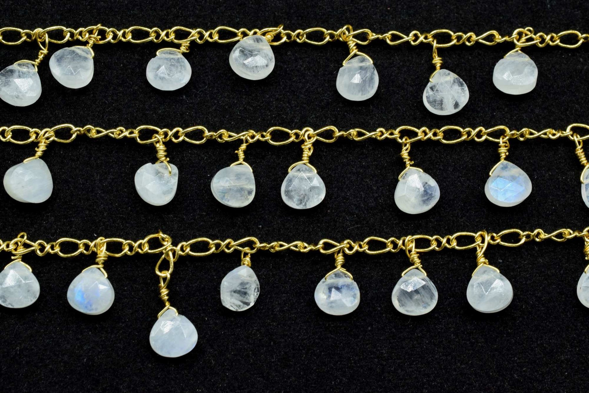 Moonstone 6mm Heart shape briolette chain,Moonstone Heart Shape Rosary Chain,Sold By Foot,Moonstone briolettes beaded chain,Moonstone chain