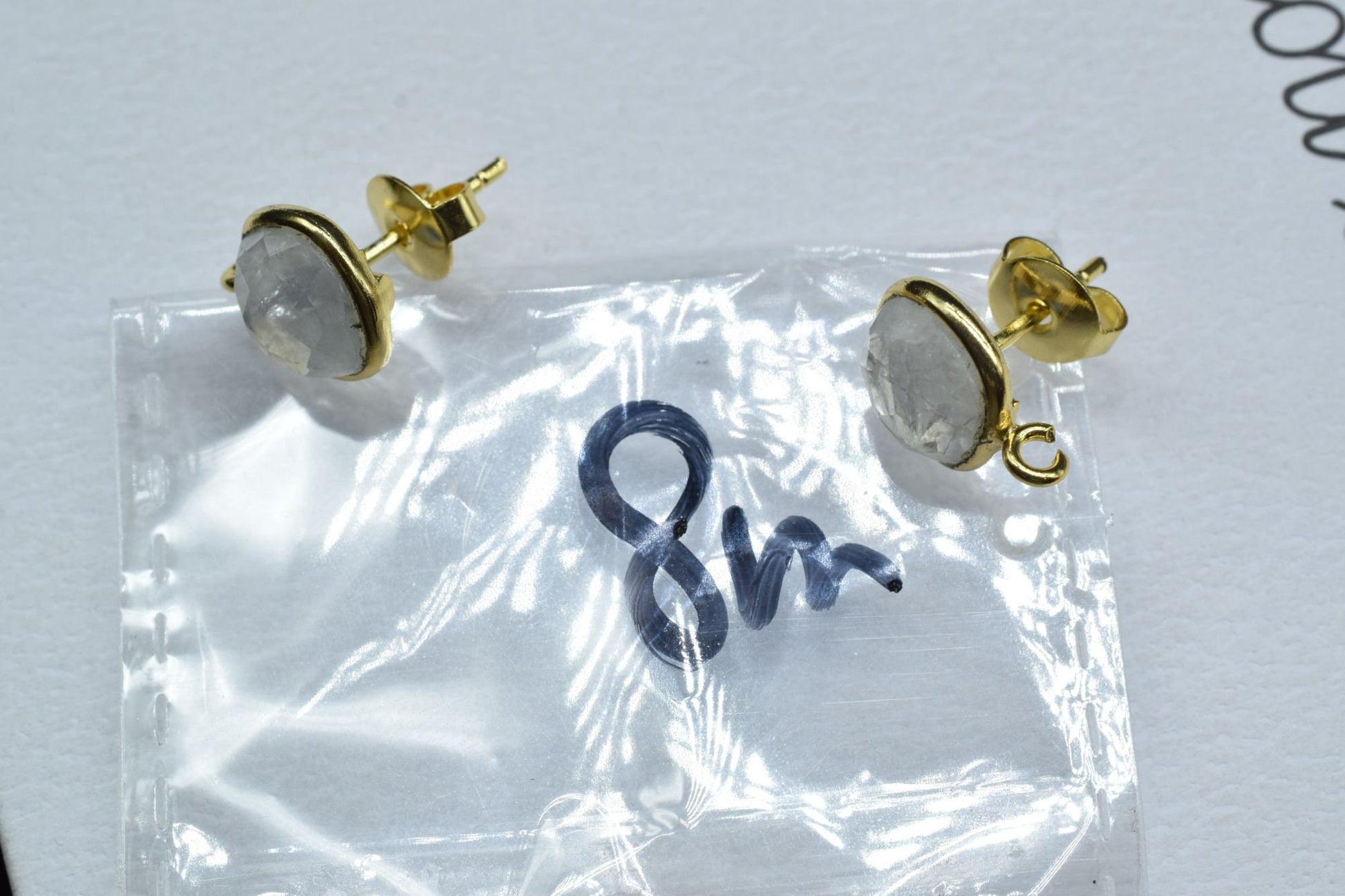 Moonstone 8mm Cushion Earring Connector,Jewelry Craft Supplies,Moonstone connectors post stud,Jewelry,Cushion Stud Connector,Jewelry Finding