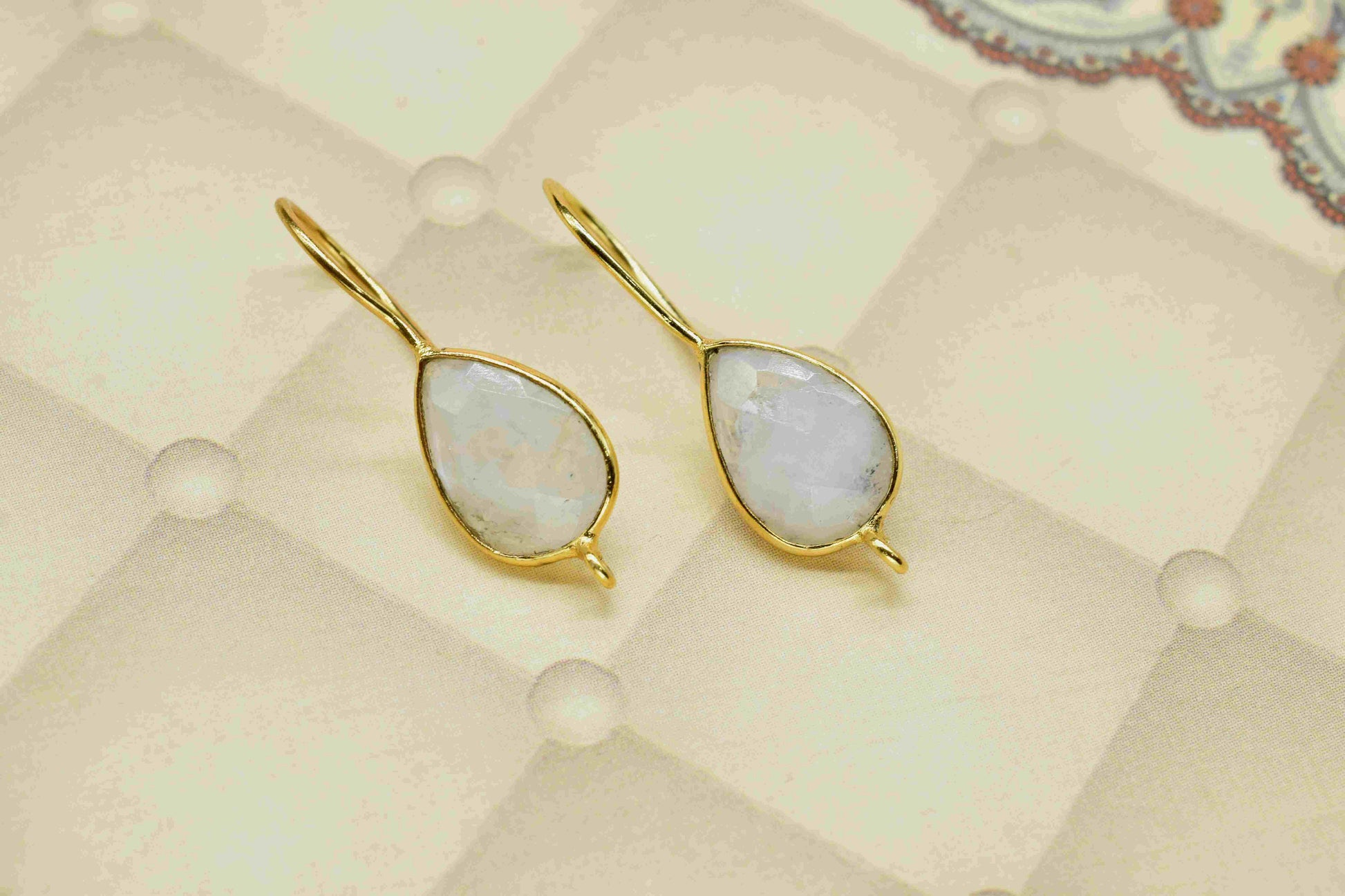 .Moonstone 9x13mm Pear Shape Earring Connector,Moonstone Studs Earrings Jewellery,Teardrop Connector,Jewellery Finding,Jewellery Craft Supplies,Gift